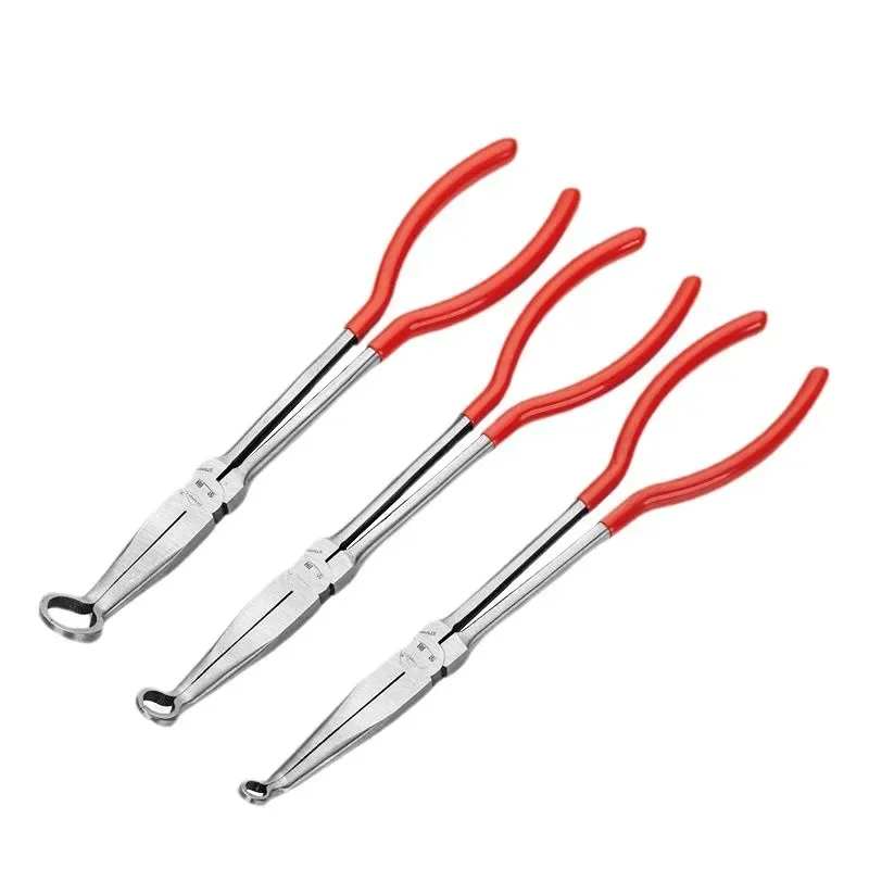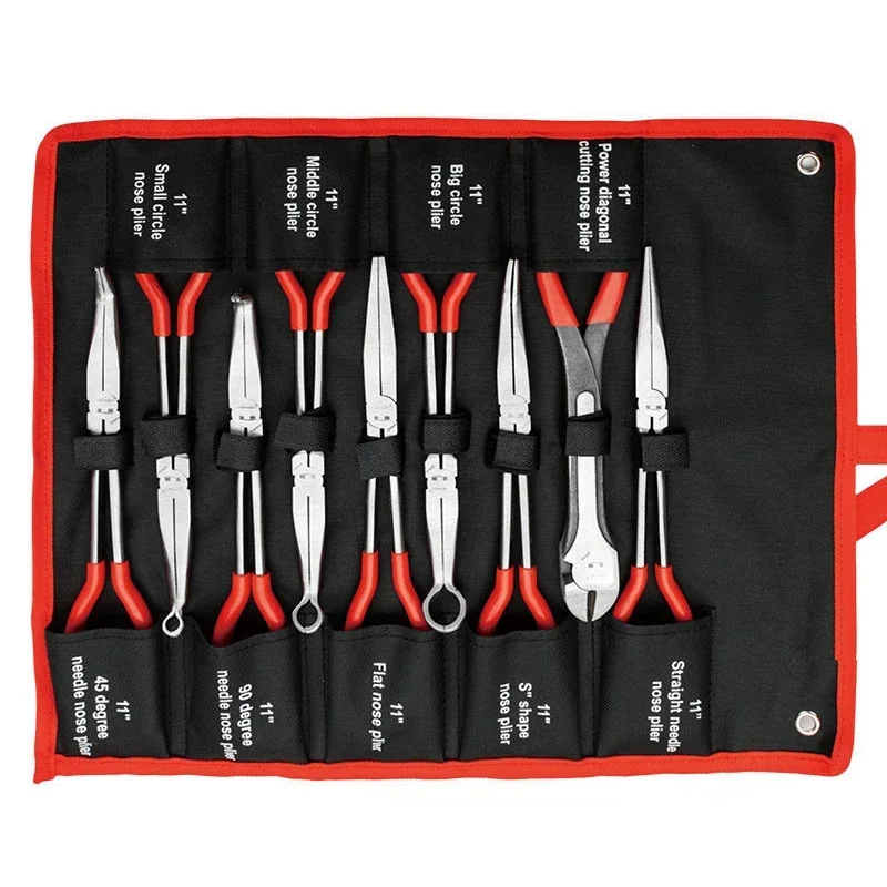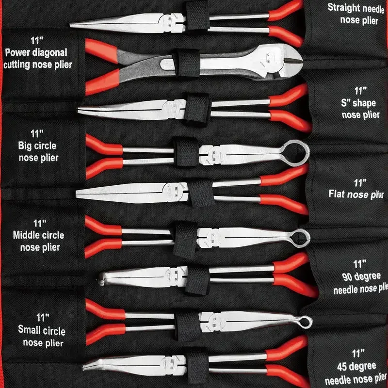 Imagine having the perfect tools to tackle intricate tasks with ease; this 9-piece set of needle nose pliers offers unmatched versatility and durability. Crafted from drop-forged, heat-treated alloy steel, these pliers are built to last through demanding projects. The set features various bends at 0°, 20°, 40°, and 90°, along with multiple mouth types including clamp medium, small, large circles, and extended oblique and flat mouths, making them ideal for reaching tight spots. The vibrant red handles with soft, non-slip PVC coating provide a comfortable grip to reduce fatigue. Whether you're working on metal, electronics, or detailed craft projects, these multifunctional pliers will enhance your efficiency and precision, transforming complex tasks into manageable ones.