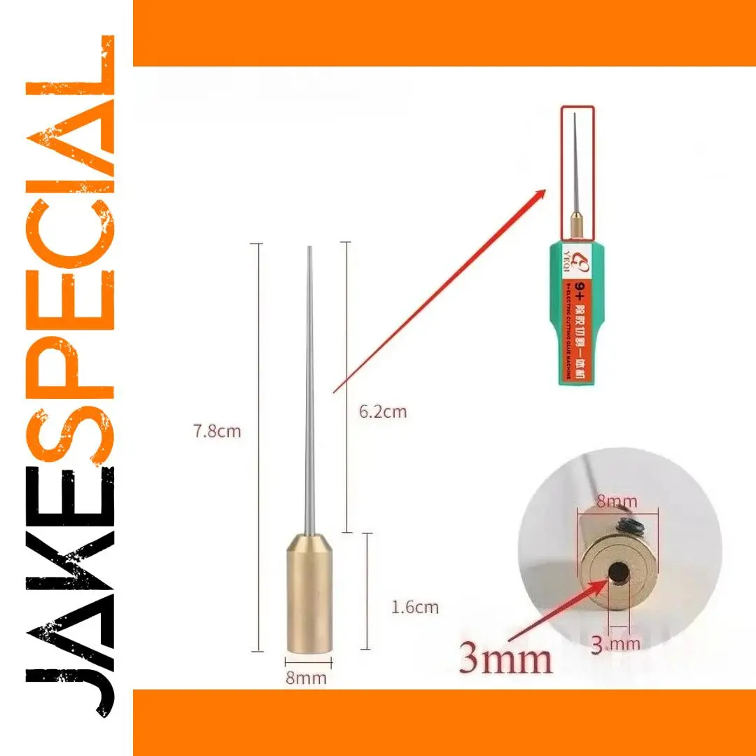 Discover the unmatched accuracy of this precision needle tip designed specifically for the CJ 9+ electric cutting machine. Crafted to facilitate delicate removal and precise application of OCA glue, this tool features a fine, pointed needle tip measuring 3mm in diameter. Its sleek, elongated design ensures comfortable handling and exceptional control during intricate electronic repairs. The handle boasts a polished, metallic finish with a circular base of 8mm diameter, featuring a small central hole of 3mm. The black coil wrapped around the base enhances its intuitive usability. Available in multiple packages—1, 2, or 5 pieces—you will always have a reliable tool on hand for precision tasks. Own this trusted accessory to elevate your repair experience with accuracy and efficiency.