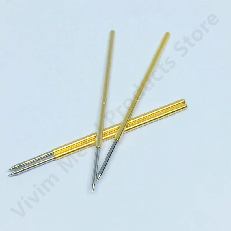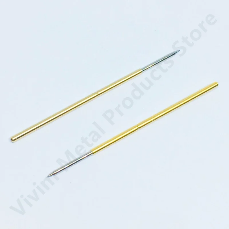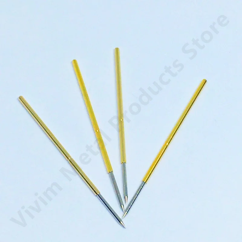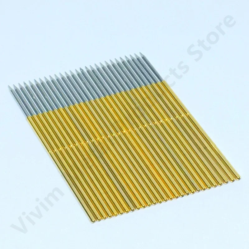 Enhance your circuit testing with this set of 100 precision spring test probes, each measuring 33.35mm in length with an outer diameter of 1.02mm and a tip diameter of 0.74mm. Crafted from phosphor brass and nickel for excellent corrosion resistance and durability, these probes feature sharp tips for precise contact on PCB contact pads. Designed with pogo pin technology, they are ideal for electrical testing, circuit probing, and PCB inspection applications. Their sleek, minimalist design emphasizes technical precision, with reflective metallic tones that highlight craftsmanship and quality. Organized and uniform, these probes provide reliable performance for professional testing needs.