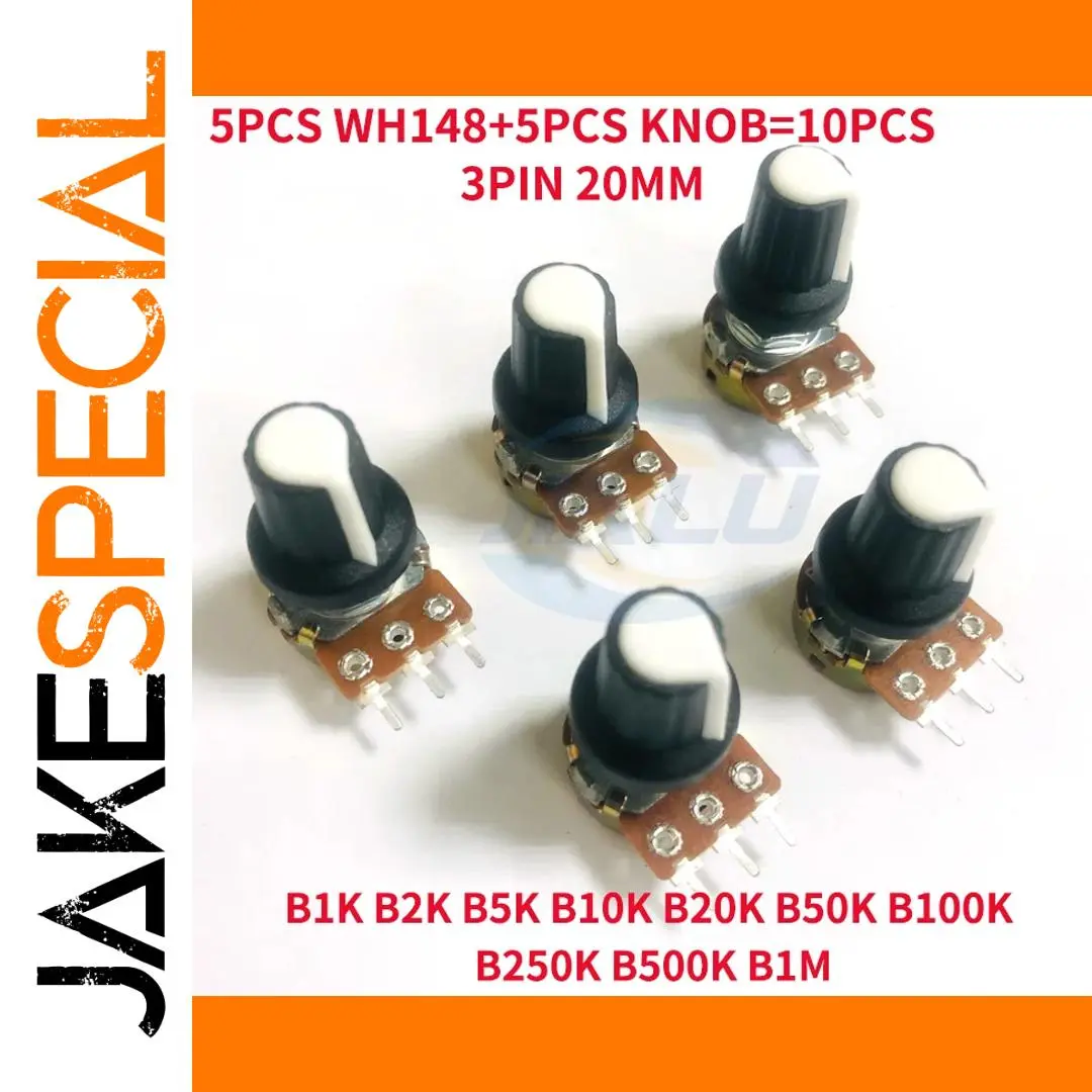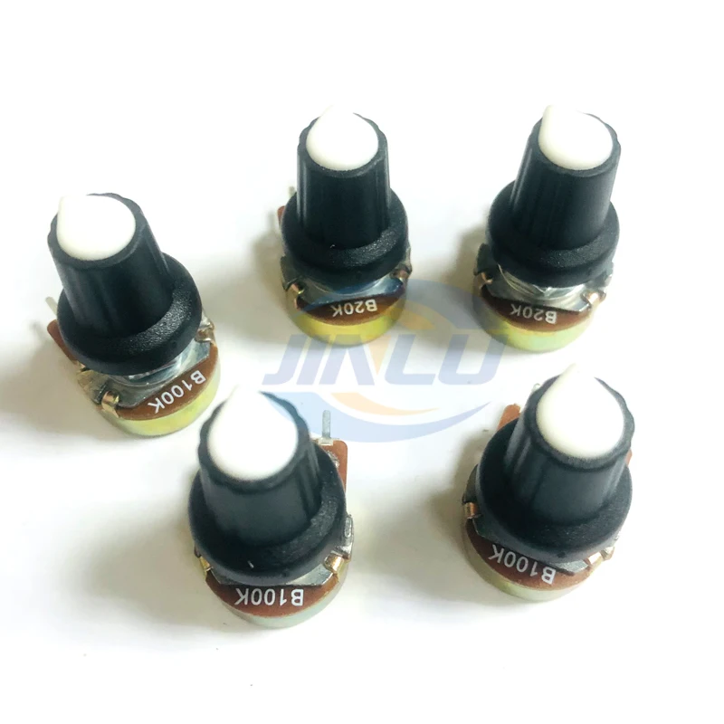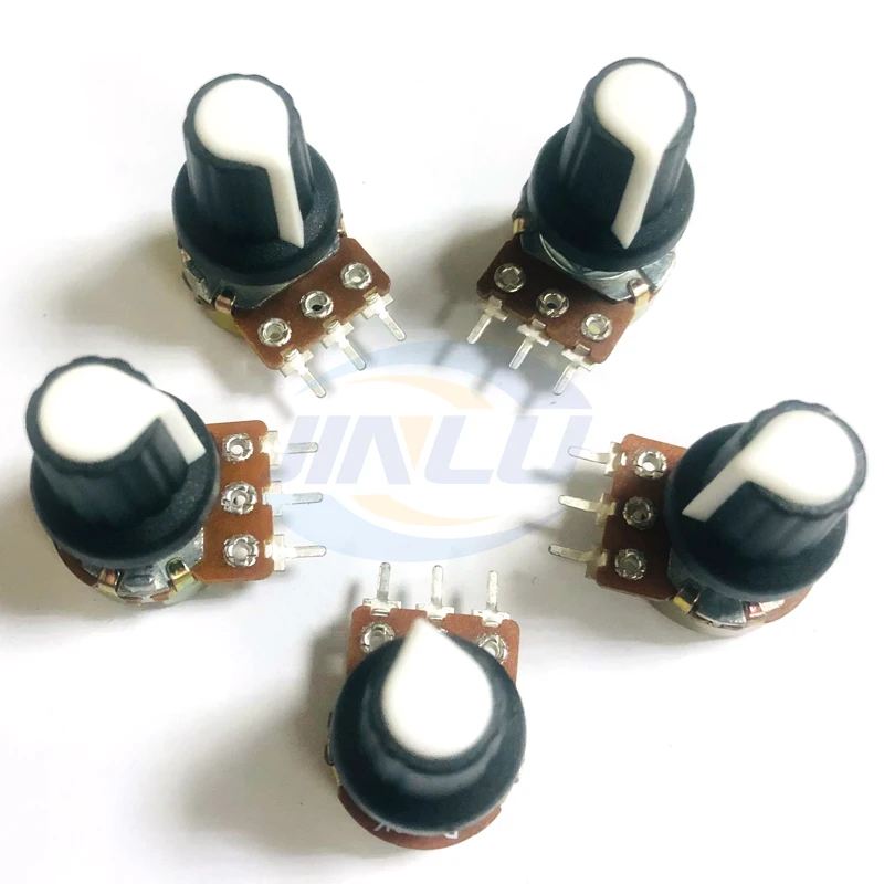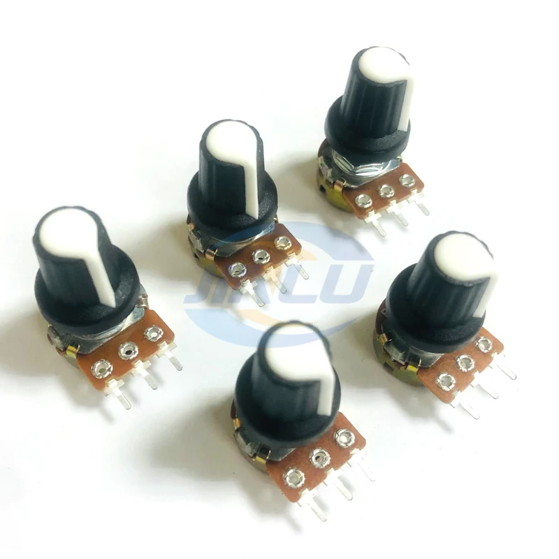 Step into your next project confidently with this set of five precision rotary potentiometers. Whether refining audio controls or creating custom electronic gadgets, these components are designed to deliver reliable performance. Their sleek black design combined with the textured white caps not only adds style but also makes adjustments effortless. The wide resistance range offers flexibility, giving you full control over your circuit's behavior. Don't miss the opportunity to enhance your toolkit with these durable, high-precision potentiometers. Experience the convenience and reliability they provide—make the smart choice and add them to your collection now!