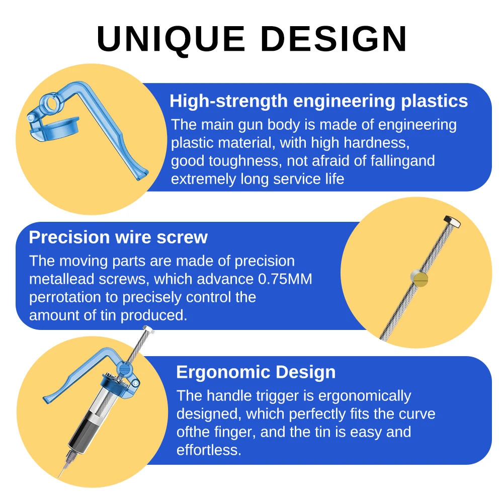 Transform your mobile phone repair experience with this innovative solder paste propeller and syringe booster set. Crafted for professionals and enthusiasts alike, this toolset enhances accuracy and control during delicate soldering tasks. Its slim, L-shaped plastic body with a smooth matte finish ensures comfortable handling, while the vibrant blue and pristine white color options help you organize your workspace efficiently. The circular metallic pivot points with gold-colored inserts offer smooth movement and durability, making adjustments easy and precise. Whether you're working on small components or fine circuitry, these tools provide a reliable, ergonomic solution to improve your workflow and achieve flawless results in every repair session. Feel confident with every soldering task using this sleek, high-quality set.