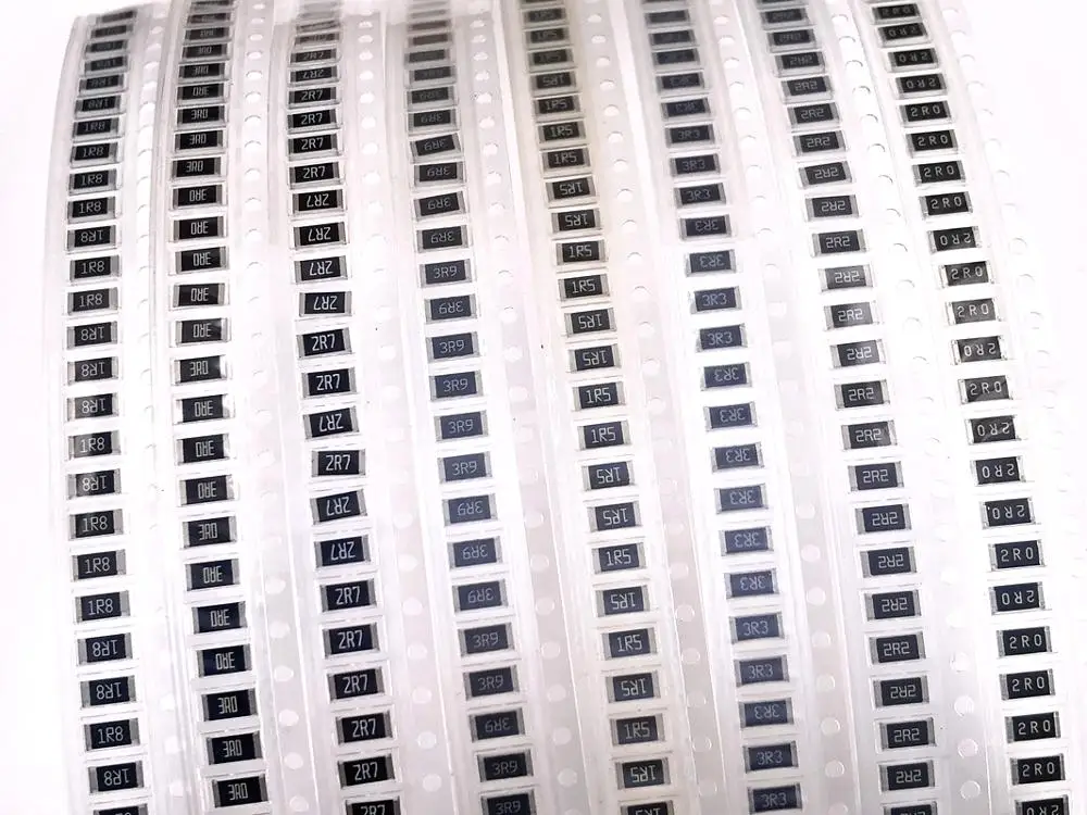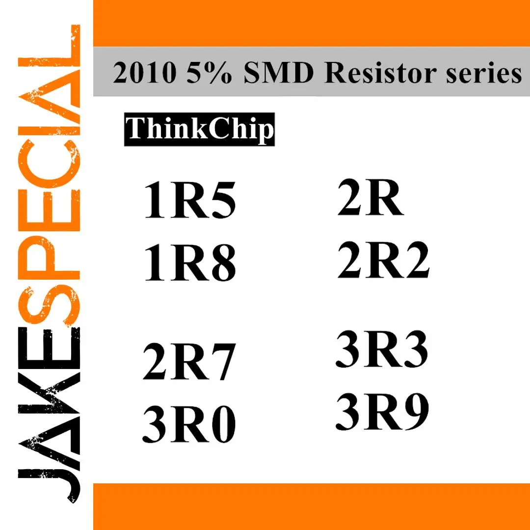 Enhance your electronic projects with this reliable set of surface-mount resistors from the 2010 series by Takin Chip. Designed for precision, each resistor features a 5% tolerance, ensuring consistent performance. The package contains 200 resistors, neatly organized and easy to handle, with eight distinct resistance values: 1.5Ω, 1.8Ω, 2Ω, 2.2Ω, 2.7Ω, 3Ω, 3.3Ω, and 3.9Ω, with 25 pieces per value. Built for surface-mount applications, these resistors have a compact 2010 footprint measuring 2.0mm x 1.0mm. Their dark ceramic-like appearance contrasts subtly with shiny metallic terminations, emphasizing quality and durability. Perfect for a wide range of electronic circuit designs demanding precision resistors, offering easy installation and dependable performance.