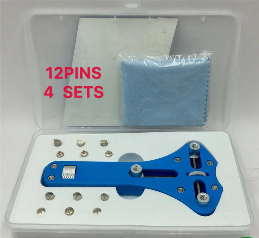 Transform your watch repair experience with this versatile, alloy-made universal watch back case opener, weighing 190 grams. Featuring an adjustable three-leg design with 12 interchangeable pins, it fits a wide range of watch sizes and patterns. The tool’s buckles can be precisely adjusted in angle and distance using the included handle and plate, while multiple interchangeable shapes ensure compatibility with various embossed back covers. Its sleek design combines durability and practicality, making it ideal for both professional watchmakers and enthusiasts seeking reliable case opening solutions. With a compact size and customizable features, this opener streamlines your watch repair tasks and ensures a secure, efficient fit for your watch collections.