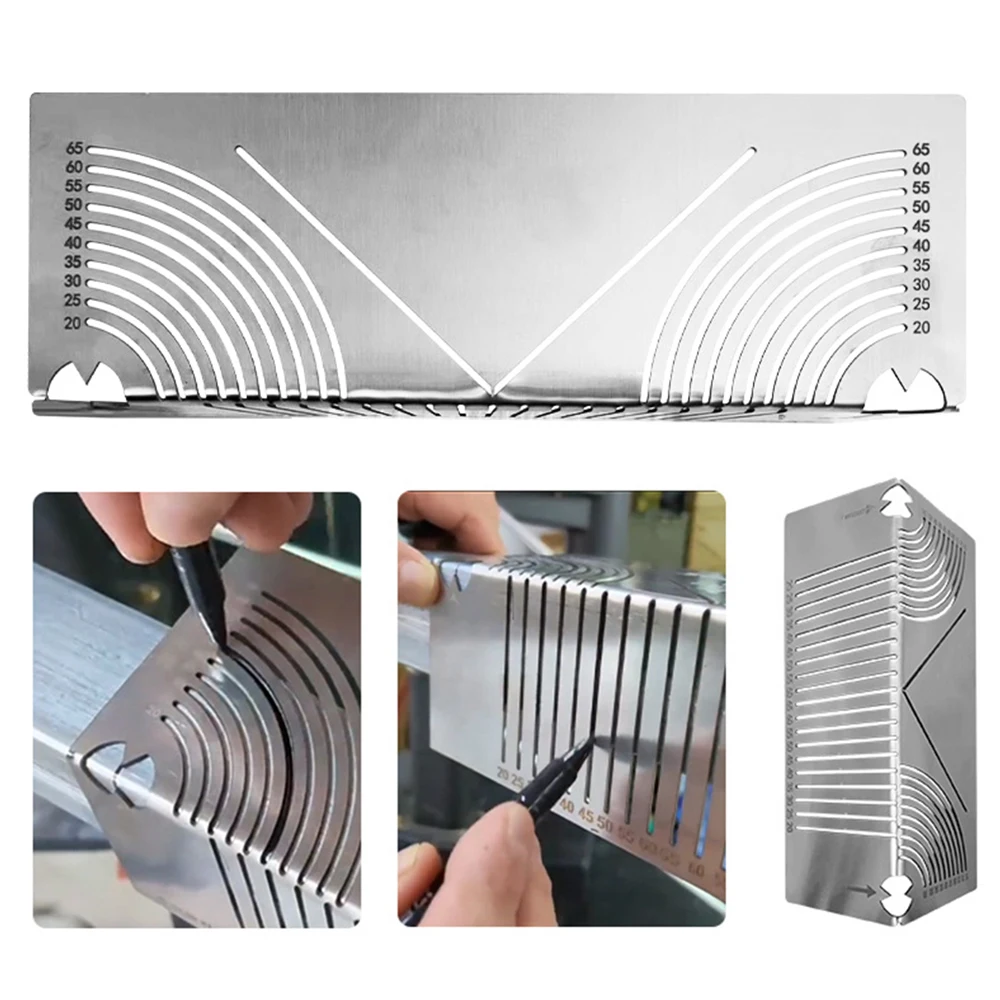 The Precisionflex Angle Arc Measuring Tool is a must-have for professionals and DIY enthusiasts alike. Crafted from high-quality stainless steel, this multifunctional marking device boasts a sleek, polished surface that ensures durability and precision. With two available models, 20-65 (23.5 x 7.5 x 8 cm) and 20-80 (28 x 5.5 x 10 cm), it caters to various marking needs. The tool features easy-to-read markings and a triangular cut-out for effortless alignment with different materials like metal, wood, and pipes. Its user-friendly design encourages efficient use, ensuring both beginners and experienced users achieve flawless results in their projects.