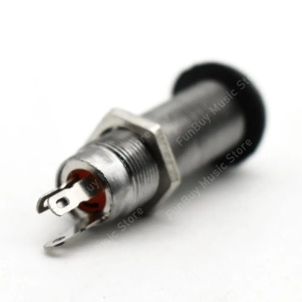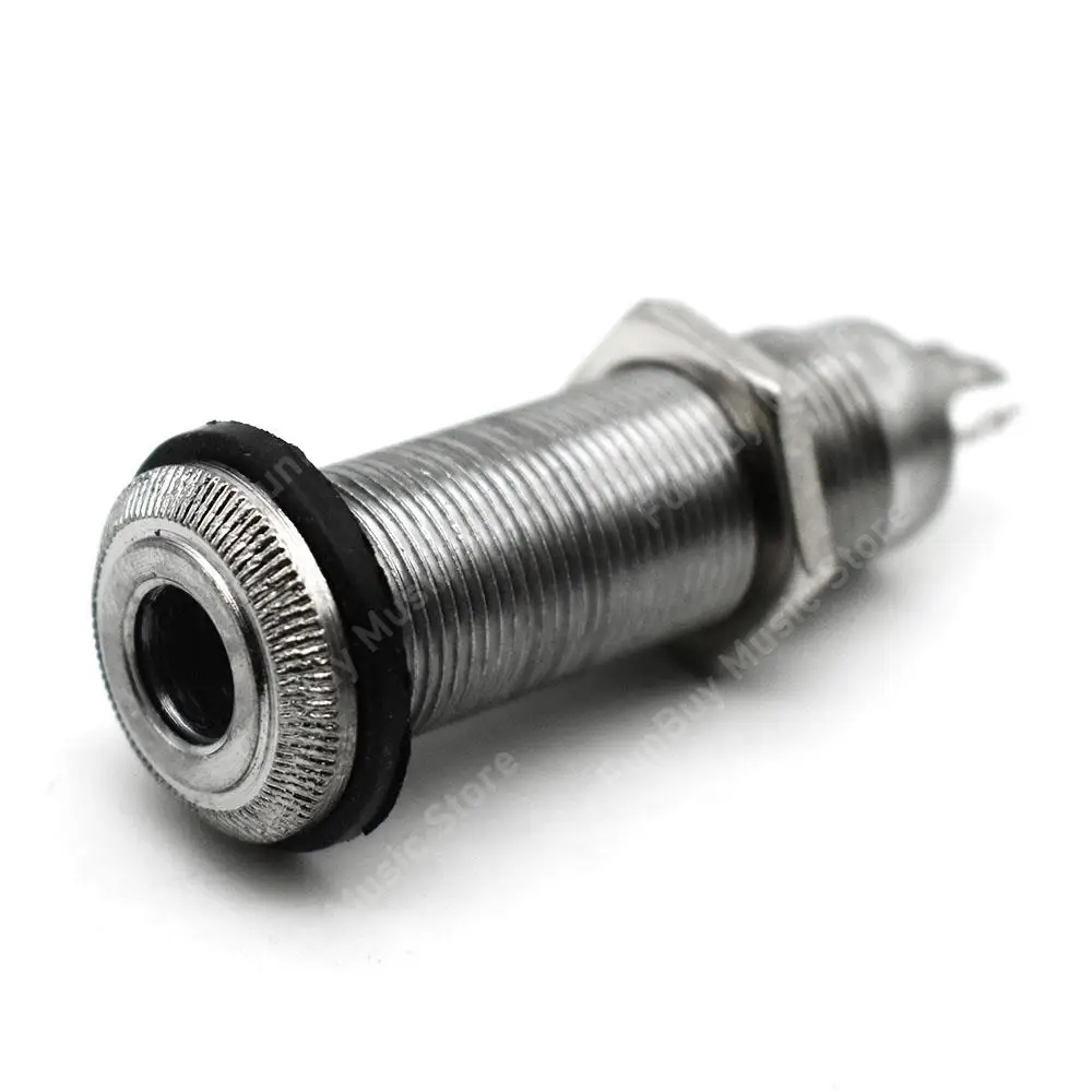 Imagine upgrading your electric guitar with this sleek, durable output jack, offering a seamless connection and professional appearance. Crafted from high-grade metal, it features a fine threading design and a polished, shiny chrome finish for a modern look, or a smooth matte black surface for understated elegance. The flat, rounded front face with a recessed center hole ensures a secure fit with your instrument’s input, while the three prongs guarantee reliable electrical contact. The included rubber washer and nut provide enhanced insulation and vibration resistance, ensuring long-lasting performance. Perfect for side-mount installation, this jack offers a robust connection point for your guitar, bass, or other instruments requiring a 1/4″ (6.35mm) output. Elevate your instrument’s reliability and style with this premium component.