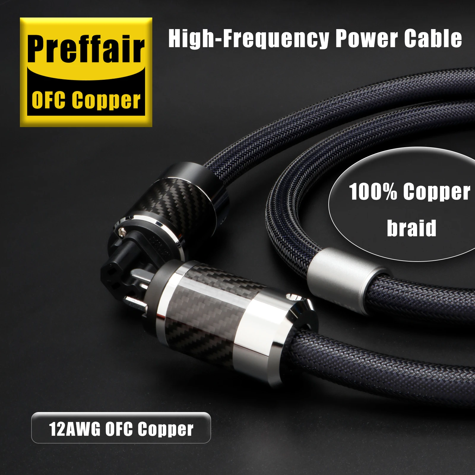 Experience the ultimate in power delivery with this high-end power cable, designed for audiophiles and professionals seeking reliable, high-quality connections. Crafted with 99.99998% OFC silver-plated copper conductors and Teflon insulation, this cable delivers exceptional conductivity and minimal signal loss. Its durable, braided outer sleeve in sleek dark gray or black not only enhances its aesthetic appeal but also ensures longevity. Equipped with a gold-plated EU plug and a matching female connector, it is compatible with EU, US, AU, and UK power outlets, rated for 125V and 15A. The reinforced polyurethane outer sheath protects against wear, while the comprehensive shielding made of 100% copper minimizes interference. Ideal for amplifiers, speakers, audio equipment, and other high-performance devices, this cable guarantees a secure, stable power connection.