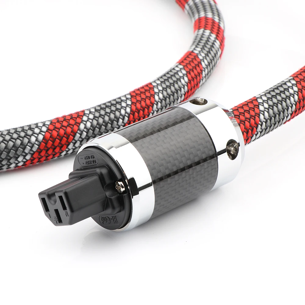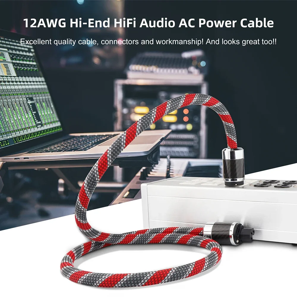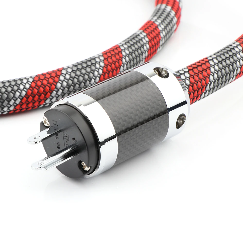 Experience enhanced audio clarity and durability with this premium 12AWG OCC audio power cable. Crafted for high-end HiFi systems, it boasts a sleek, modern twisted pair design with a woven black, red, and gray outer sheath, delivering a high-tech aesthetic. The carbon fiber power plug exudes strength and sophistication, matching the overall premium look. Made with 99.9998% pure OFC copper, it ensures exceptional conductivity, noise reduction, and robust power delivery. Available in multiple lengths, it is perfect for upgrading your audio setup—turntables, amplifiers, DACs, or CD players—providing a cleaner sound and increased dynamic range. This cable combines style, performance, and reliability, making it an essential upgrade for serious audiophiles looking for premium quality and performance.