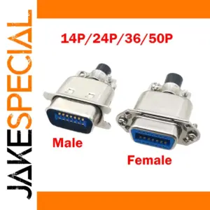 Enhance your connectivity with this versatile 57 Series Printer Connector Kit, featuring both male and female straight pin connectors available in 14-pin, 24-pin, 36-pin, and 50-pin configurations. Designed for linear printer ports, these durable connectors support voltage ranges of 5V, 12V, 20V, and 30V, ensuring reliable performance in professional settings. Crafted with high-quality metallic shells—shiny and reflective—with vibrant blue plastic insulators inside, they combine a sleek industrial aesthetic with robust functionality. Equipped with secure mounting features, including small screws and a convenient black cap handle, this connector kit is essential for maintaining precise and stable connections in printer and industrial communication systems.