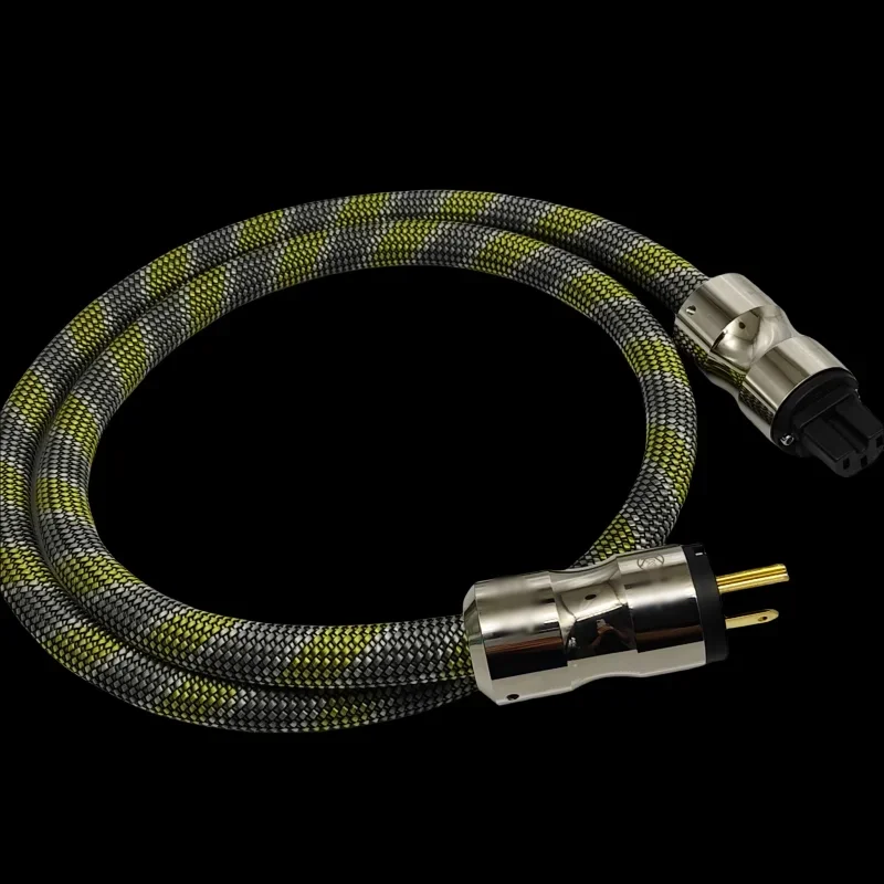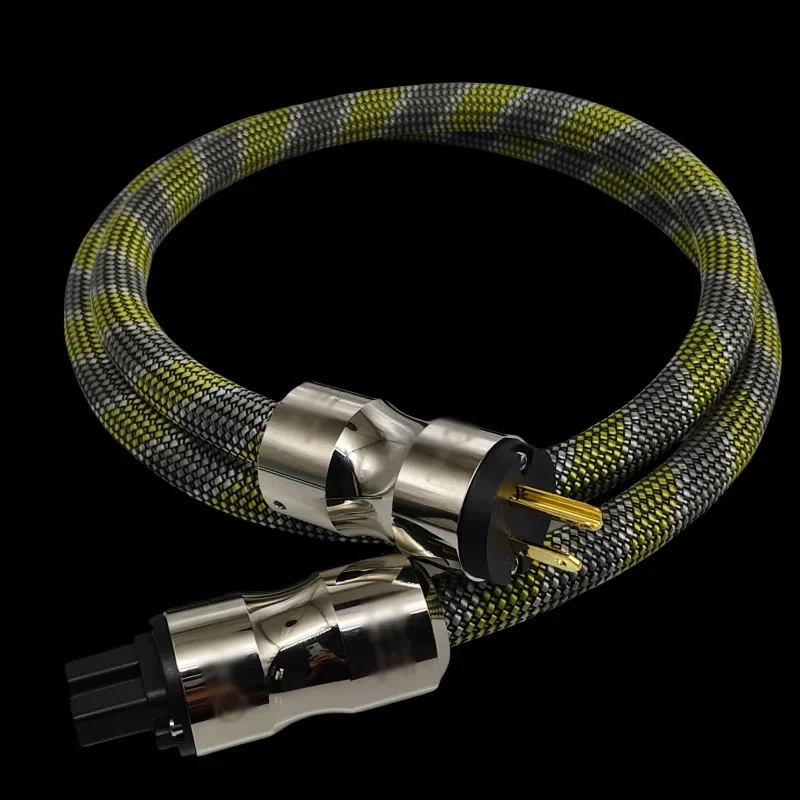 Experience the difference with this high-performance power cable, designed for audiophiles and professionals who demand top-tier quality. Its braided sheath, woven from interlaced black, silver, and yellowish-green fibers, offers both stunning aesthetics and durability. The polished silver-colored connectors provide a sleek, reflective finish, complemented by gold-plated contact points for superior conductivity and corrosion resistance. Crafted with three silver-plated OCC copper cores, this cable guarantees excellent signal transmission, reducing electromagnetic interference. Its robust 16mm diameter reinforces its heavy-duty build, ideal for high-current applications like amplifiers and speakers. Available in USB, EU, or AU versions, it ensures compatibility with a wide range of outlets, making your audio or multimedia setup more reliable and refined.