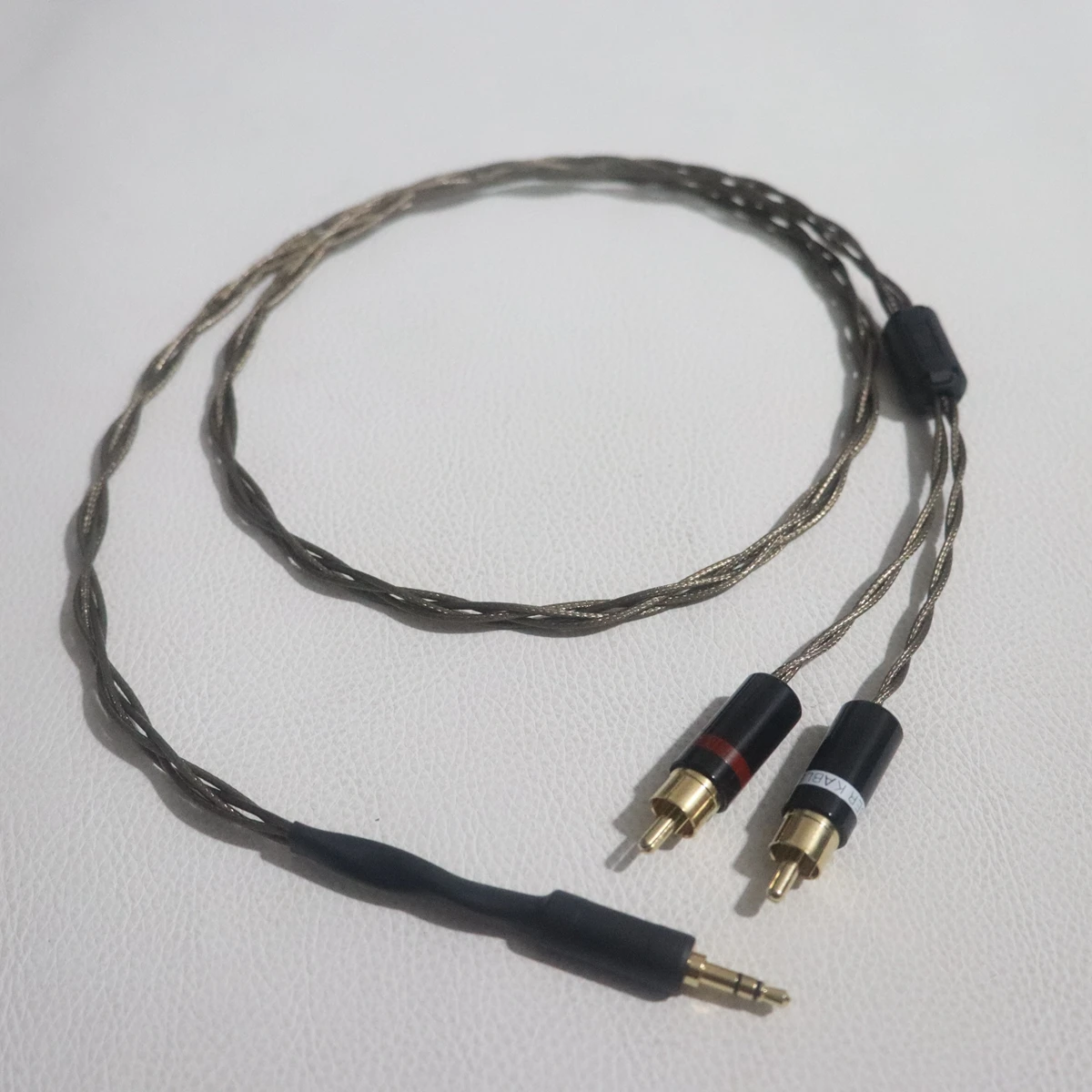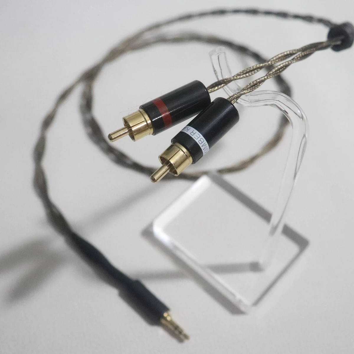 - The 3.5mm stereo plug is gold-plated, with black insulating rings clearly indicating stereo channels for durability and aesthetics.