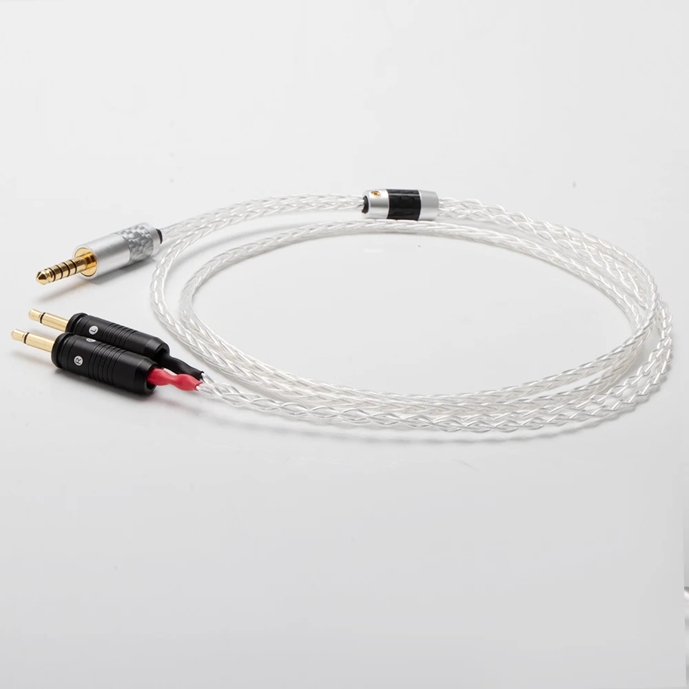 Experience an elevated audio journey with this high-quality 4.4mm headphone upgrade cable, designed to deliver pristine sound clarity and exceptional durability. Its transparent sheath reveals meticulously twisted silver-coated conductors, highlighting craftsmanship and precision. Available in lengths from 0.5m to 5m, it ensures perfect flexibility for your audio setup. The metallic silver connectors with gold-plated tips lend a sleek, modern aesthetic, while textured black and silver grips offer secure handling. The cable's layered shielding minimizes electromagnetic interference, maintaining signal integrity for rich, full-bodied sound. Ideal for audiophiles seeking flawless sound fidelity, this cable enhances your listening experience and complements your high-end headphones seamlessly.