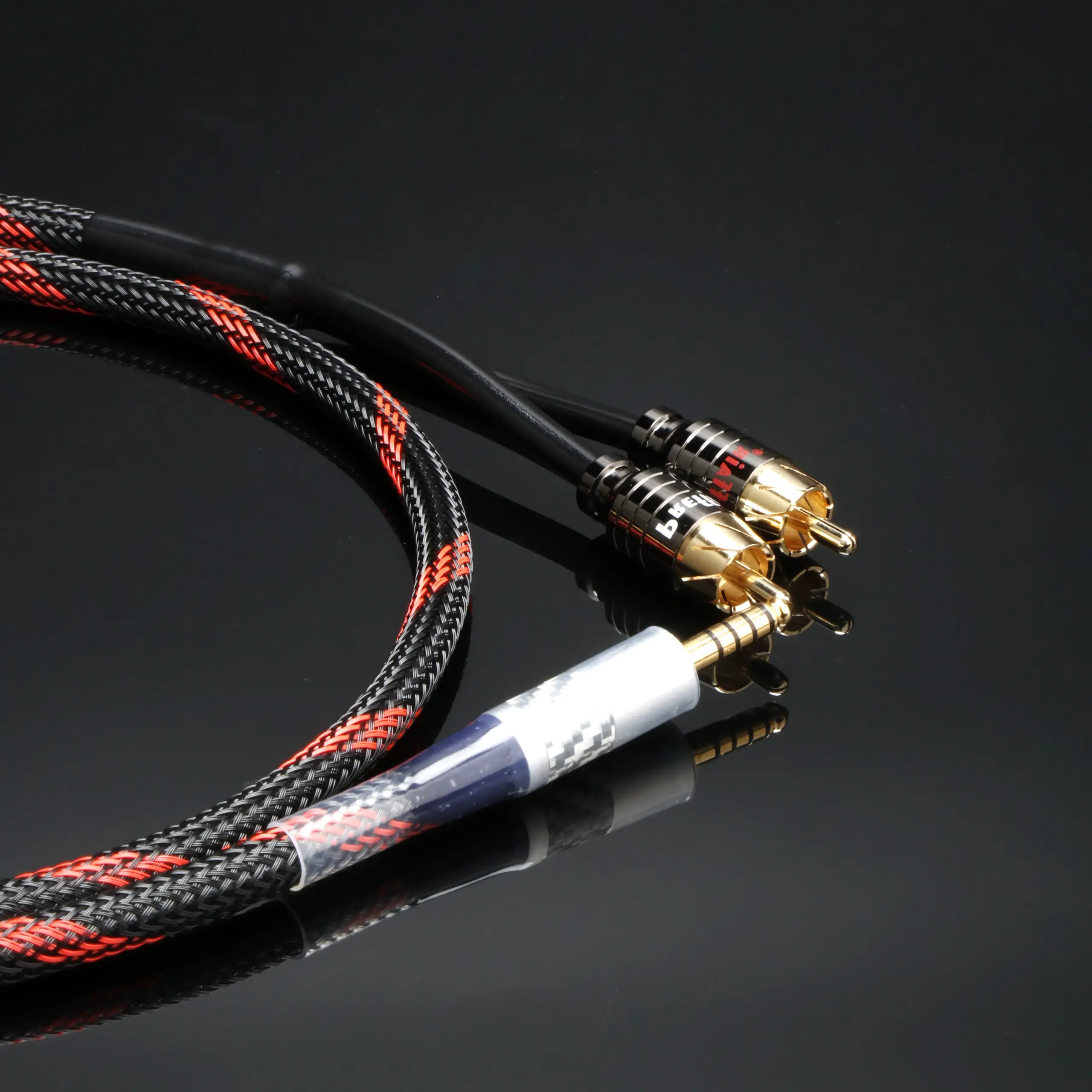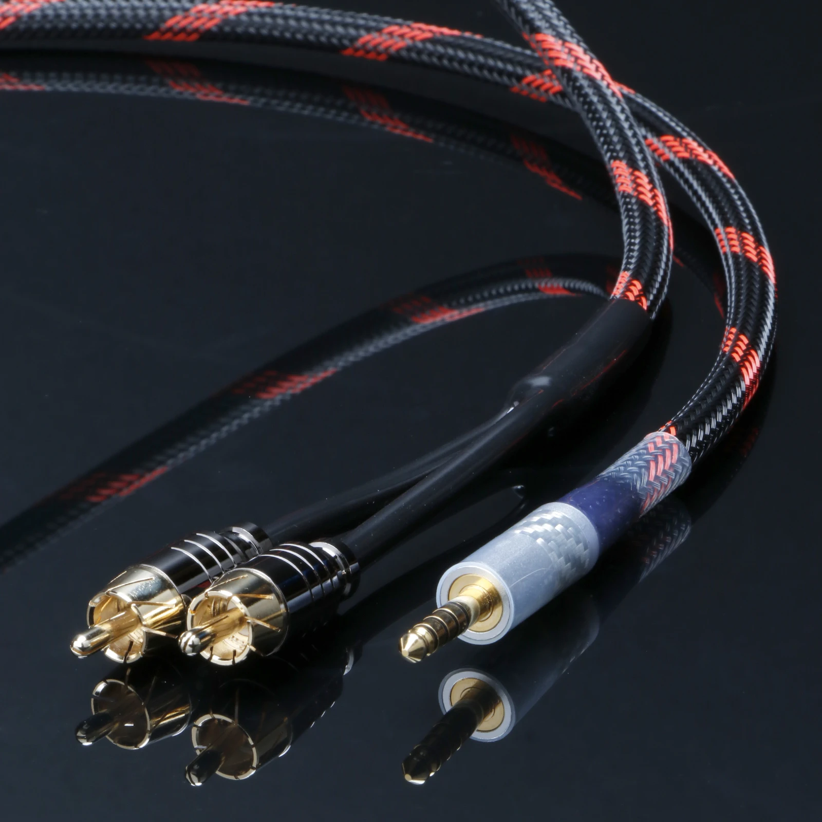 Immerse yourself in superior sound quality with this high-end upgraded audio extension cable, designed to connect your favorite audio devices seamlessly. Featuring a sleek, braided black outer sheath with striking red accents, this cable combines durability and style, adding a touch of sophistication to your setup. The metallic connectors, including a gold-plated 4.4mm male plug and two gold-plated RCA male plugs, provide excellent electrical contact and resistance to corrosion. The textured grip areas ensure easy handling, while the combination shielding guarantees signal integrity for the clearest audio possible. Whether you're enhancing your headphone experience or connecting high-fidelity speakers, this cable offers premium quality performance and a premium aesthetic.