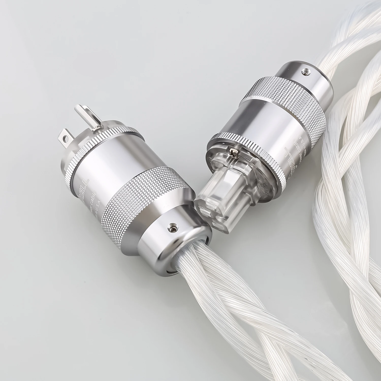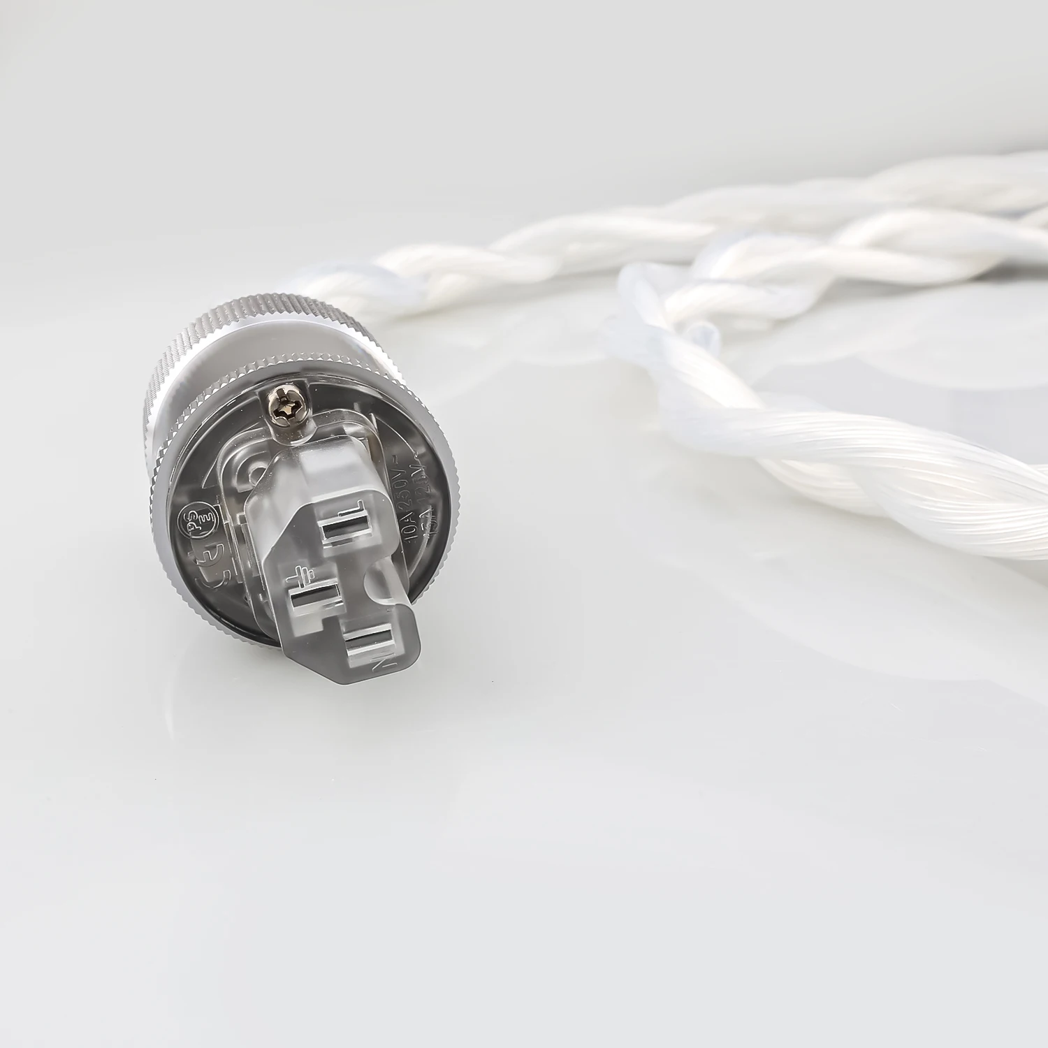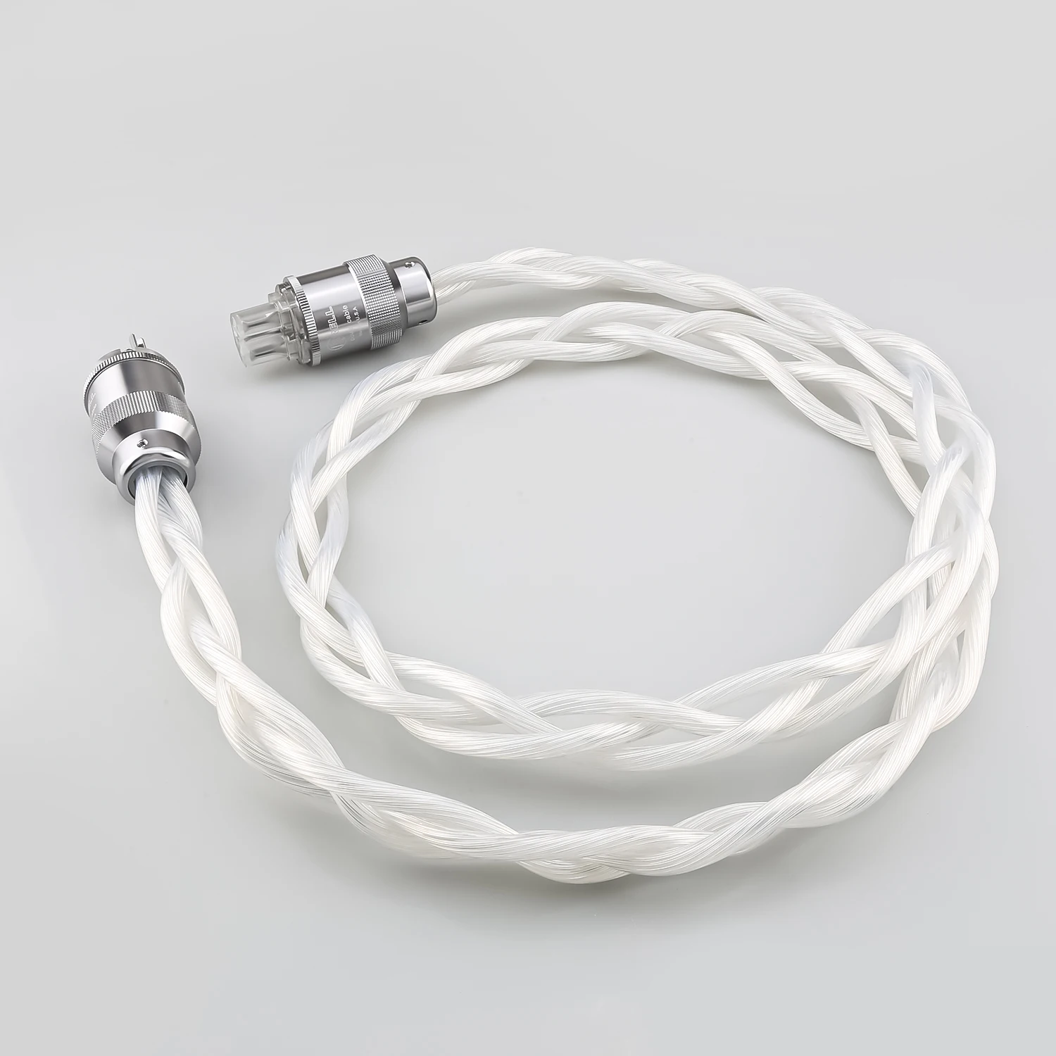 Experience the ultimate in audio fidelity with this high-quality power cable crafted from 5N OCC single crystal silver, offering exceptional purity at 99.9997%. Its lustrous, white twisted core ensures superior signal transmission, significantly reducing noise and harmonic vibrations. The elegant braided design provides both durability and a refined aesthetic, making it an excellent choice for audiophiles seeking pristine sound quality. The sleek, smooth outer surface complements the modern, professional look, while the metallic connectors with knurled textures and rhodium plating guarantee a secure, high-conductivity connection. Perfect for premium audio equipment, this cable elevates your listening experience by delivering clearer, more detailed sound with improved dynamic range and stereo imaging. It’s the ideal upgrade for your entertainment system.