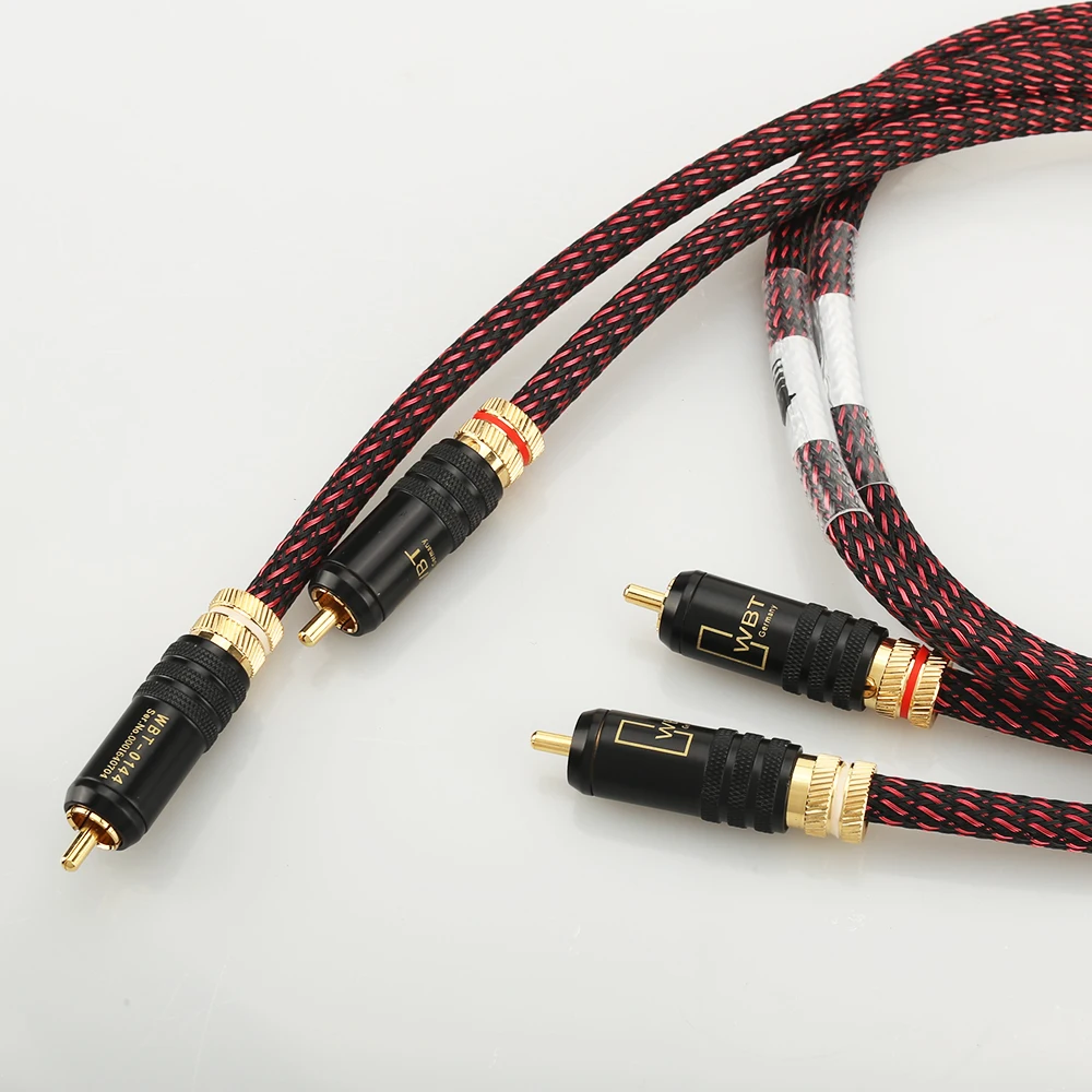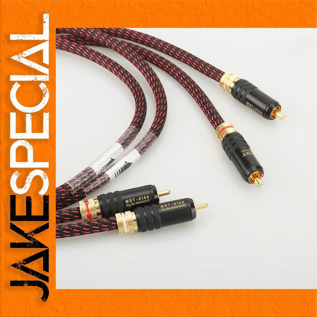 Experience superior audio quality with this high-end RCA extension cable set, designed for audiophiles and professionals alike. Crafted with 5N OFC copper, it ensures maximum signal clarity and durability. The sleek braided exterior features a striking black and red pattern, offering both a stylish look and enhanced resistance against interference. Each cable is equipped with gold-plated brass connectors, providing excellent conductivity and corrosion resistance for long-lasting performance. The textured black connectors with red right-channel rings make for easy identification and secure handling. Perfectly suited for high-fidelity sound systems, DVD players, and amplifiers, this cable combines precision engineering with handcrafted quality, enabling you to enjoy pristine audio without noise or distortion.