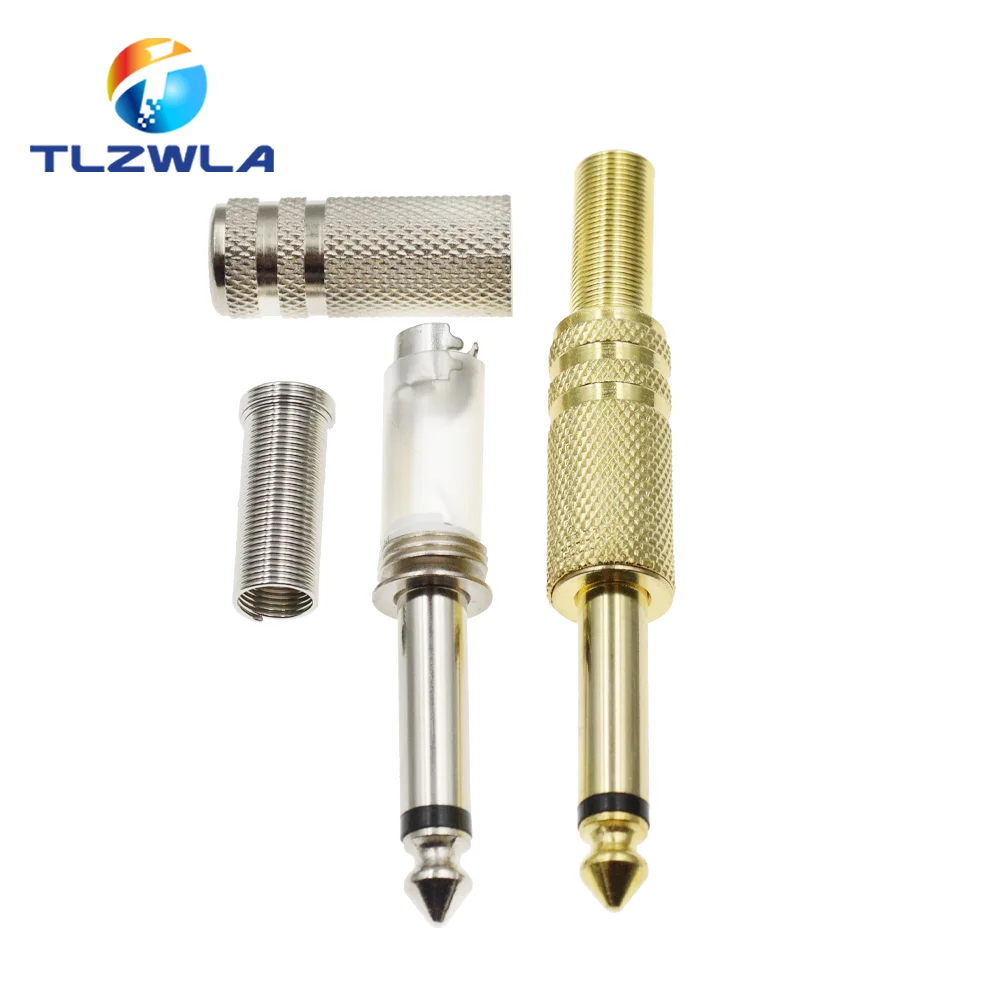 Experience superior audio connections with these high-quality 6.35mm mono plugs, designed for professional and home audio setups. Each connector measures approximately 72mm in length, featuring a rugged cylindrical metal body with textured knurled grips near the center for secure handling. The gold-plated tips ensure low signal loss and enhanced durability, providing clear and reliable sound transmission for microphones, speakers, or audio equipment. Ideal for connecting mono channels in various environments such as KTV, recording studios, or live performances. Their sleek, industrial-modern style not only offers excellent functionality but also adds a touch of elegance to your audio setup. Trust these connectors to deliver high-performance sound quality every time.