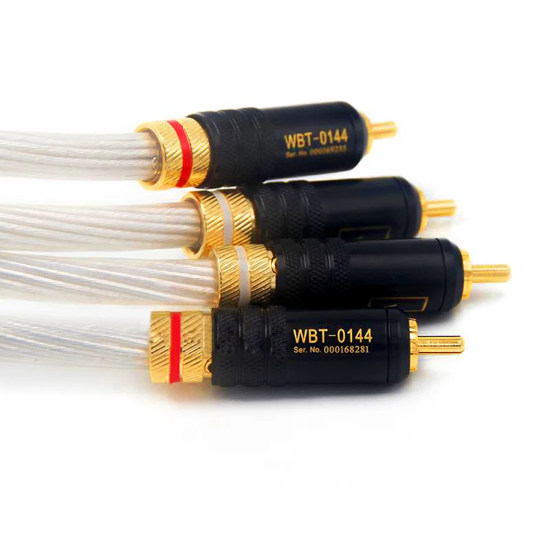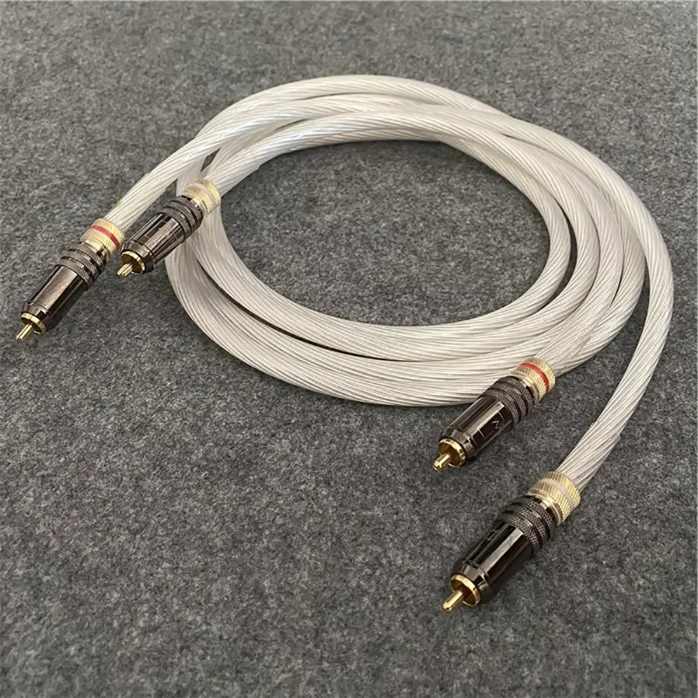 Imagine enhancing your high-fidelity audio setup with these meticulously crafted RCA interconnect cables. Designed for audiophiles and professionals alike, they feature pure copper silver-plated conductors, ensuring superior signal transmission. The 8mm thick cable housing, wrapped in a clear, glossy PTFE insulation, not only looks sleek but guarantees durability and minimal interference. The gold-plated RCA male connectors with a secure self-locking mechanism provide a reliable, noise-free connection. Whether you're connecting amplifiers, DACs, or multimedia devices, these cables deliver crystal-clear sound with minimal signal loss. Their sophisticated design marries technical excellence with a clean aesthetic, making them an essential addition to any premium audio setup, delivering unrivaled clarity and detail.