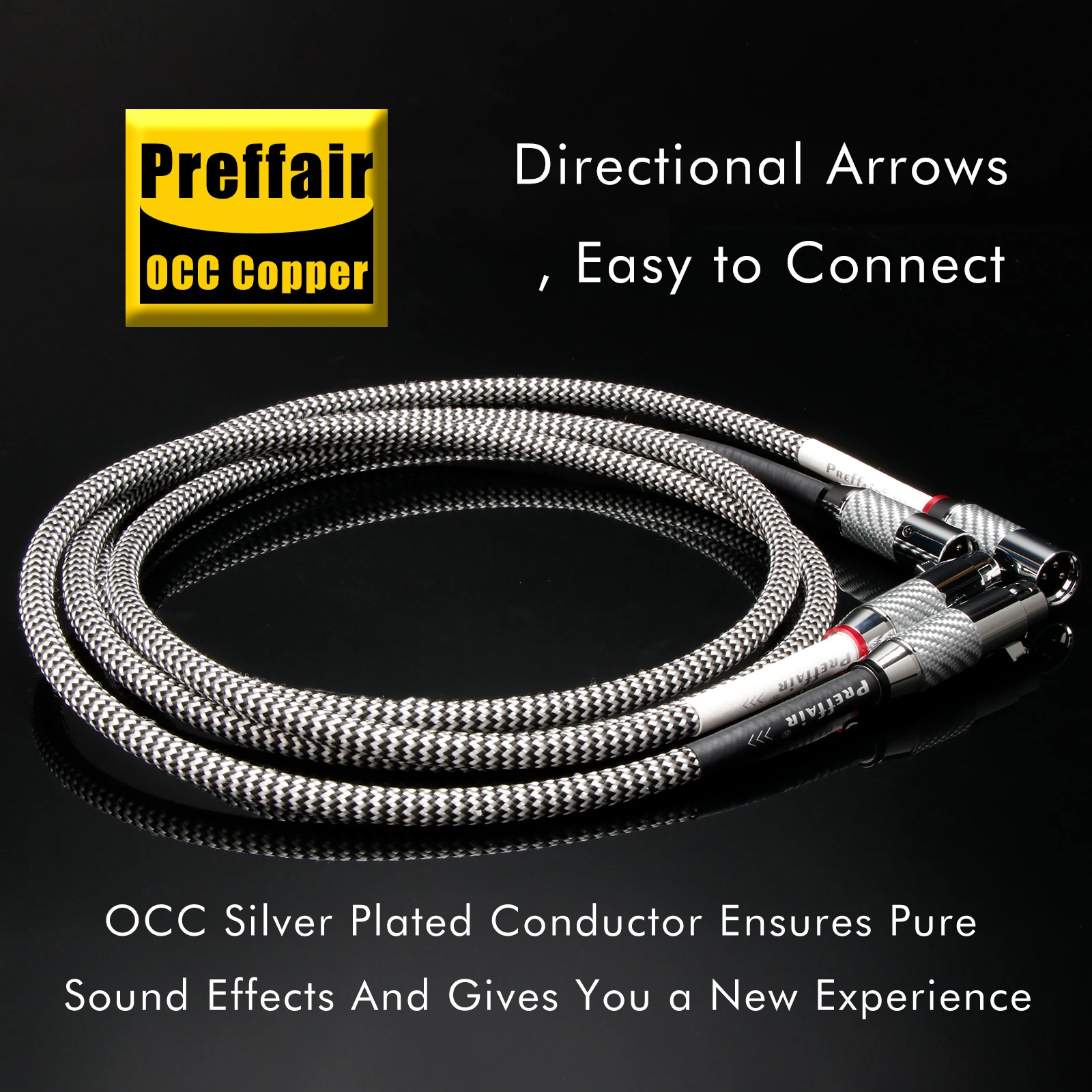 Experience premium audio performance with this 7N OCC silver-plated XLR cable, featuring four shielding layers for superior signal transfer, reduced distortion, and minimized signal loss. Equipped with high-performance carbon fiber XLR connectors with copper-plated plugs and durable metal shells, it effectively shields against external interference. Available in lengths of 0.5m, 0.75m, 1m, 1.5m, and 2m, with a 9mm outer diameter, and featuring female and male XLR connectors, it is ideal for connecting speakers, amplifiers, DVD, VCD, TV, radio, tape recorders, and CD players. Designed for professional audio use, it ensures high-fidelity sound and robust durability.