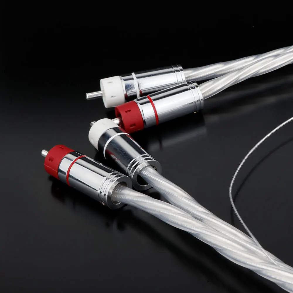 Experience superior sound quality with this high-end RCA phono cable, crafted from 99.999999% single-crystal copper with a 78-micron extruded silver surface coating on 7N OCC wire. Available in 1 meter and 1.5 meter lengths, it features a polished 8mm diameter exterior, double-layer micro-space Teflon (FEP) insulation, and advanced shielding with woven silver-plated OCC conductors. Designed for unrivaled signal transmission at 90% of the speed of light and 100% shielding, this cable delivers transparent, natural sound with rich low frequencies, pure vocals, and precise stereo positioning. Perfect for audiophiles seeking stability and high fidelity in their audio systems.
