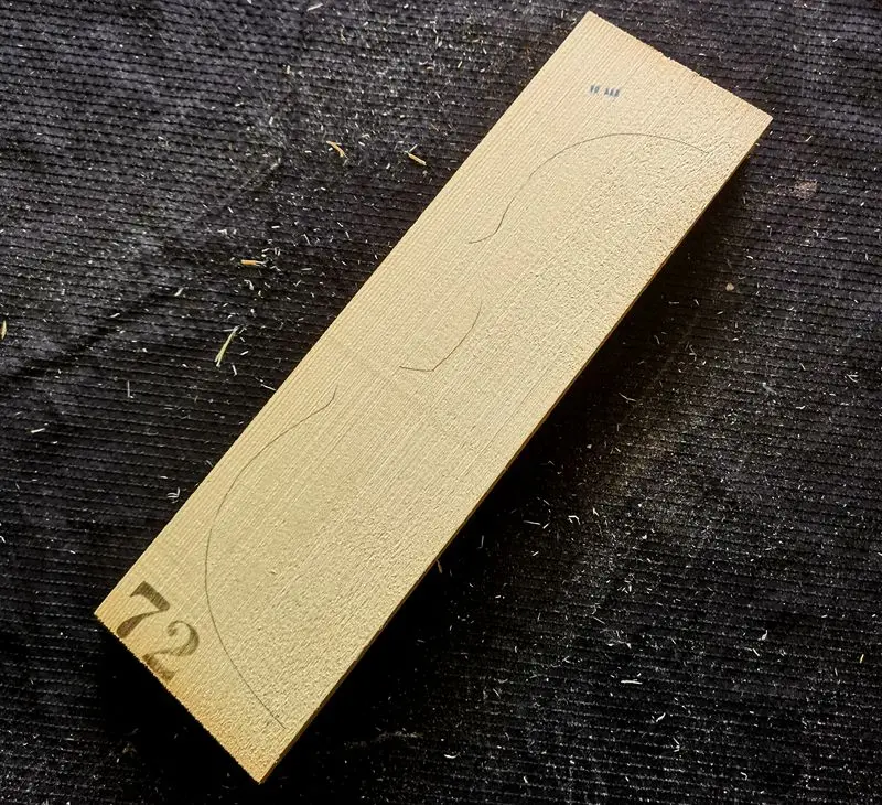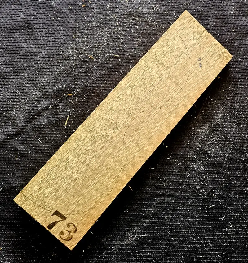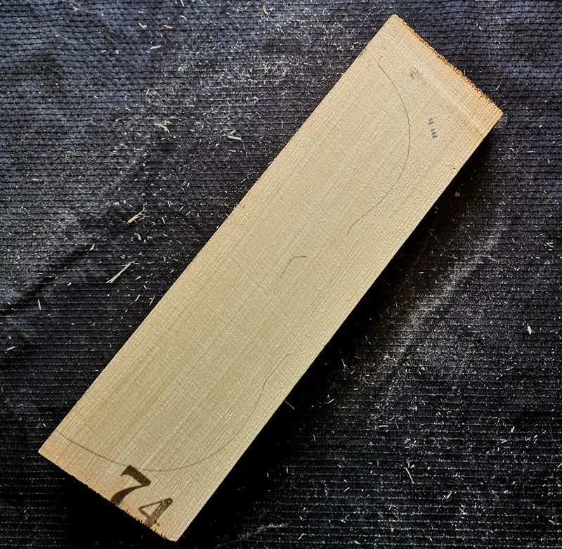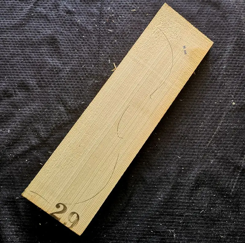 - Features a smooth, polished surface with a faint outline of the arching shape, ready for shaping, carving, and detail work during violin making or restoration.