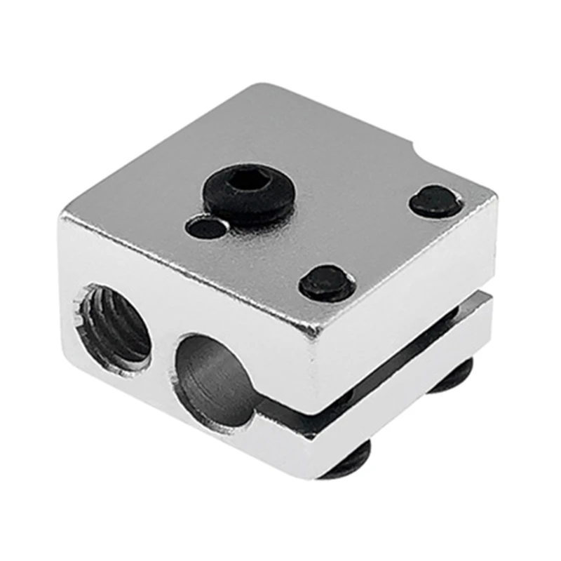 This Highly Hardened Heatblock Heater Block is engineered for optimal performance in 3D printing applications. Made from premium aluminum alloy, it boasts exceptional high-temperature resistance and remarkable durability. The polished silver finish not only enhances its aesthetic appeal but also contributes to its robust construction. Featuring a compact rectangular design with rounded corners for safety, this heater block includes a circular opening for heating elements and a groove for temperature sensor integration. Its innovative design is perfect for high-temperature scenarios, ensuring reliable and consistent results for all your 3D printing projects.
