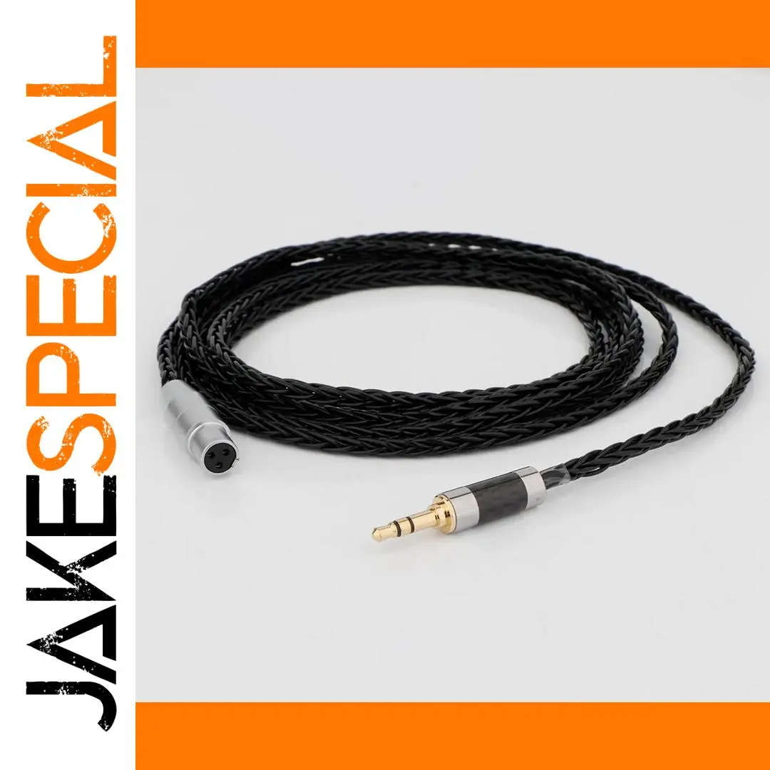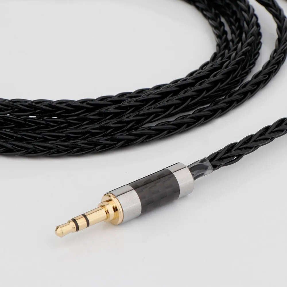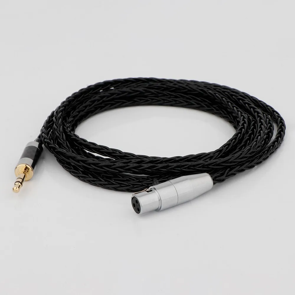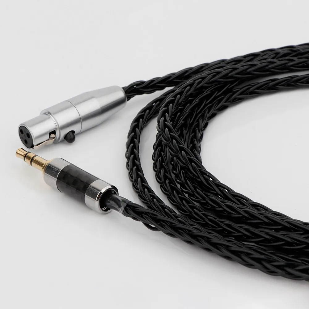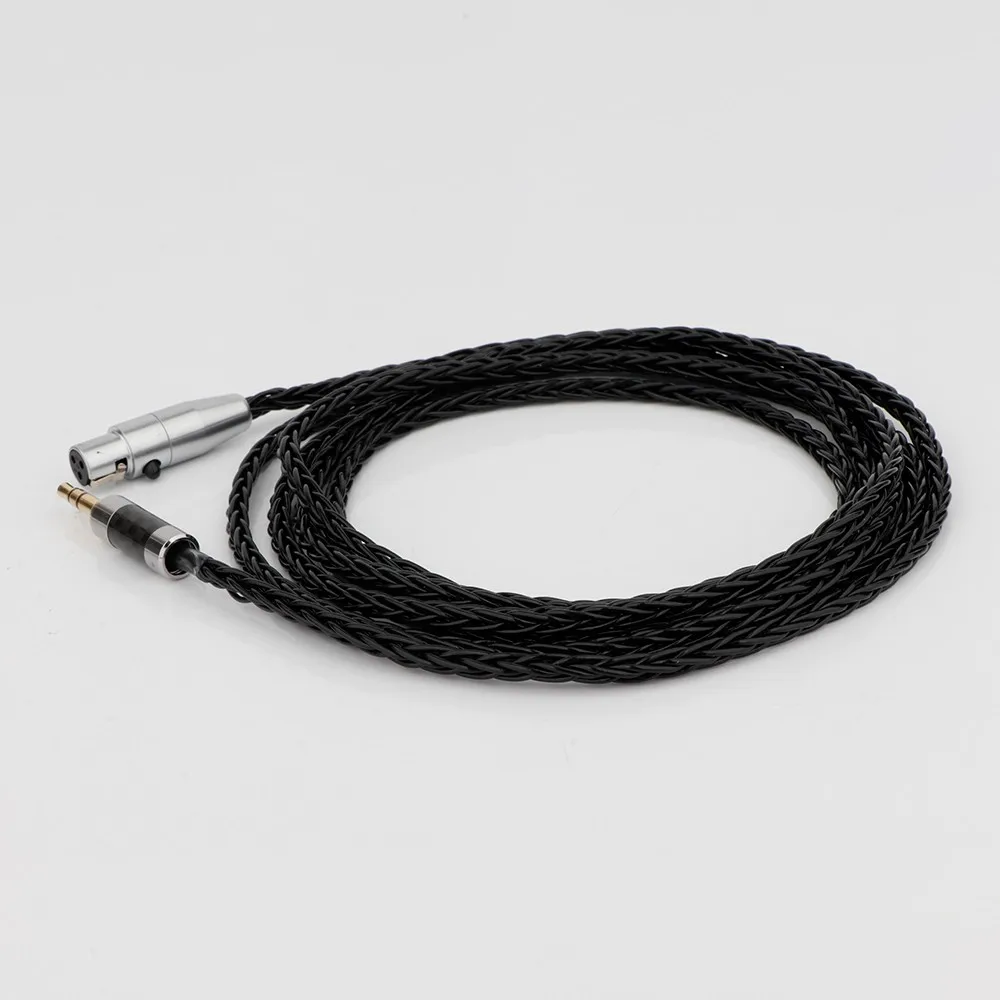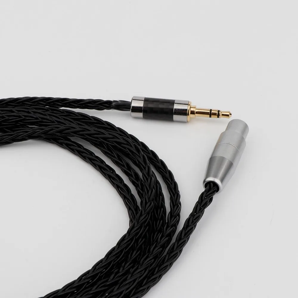 Enhance your audio experience with this premium black braided earphone cable featuring 8 cores of 99% pure 7N OCC copper conductors with silver plating for superior sound quality. The lightweight, flexible design with a 4mm outer diameter offers comfort and durability, complemented by a sleek, polished silver-colored gold-plated 3.5mm stereo (4-pole) connector compatible with high-end headphones such as AKG Q701, K702, K271, K272, K240, K141, K712, K181, K267, and K712, as well as Hifiman series, Qulcos qa361, COWON Plenue S, and F.Audio FA2 XS03 players. Available in various lengths from 0.7m to 3m, with an integrated earphone hook for secure fit.