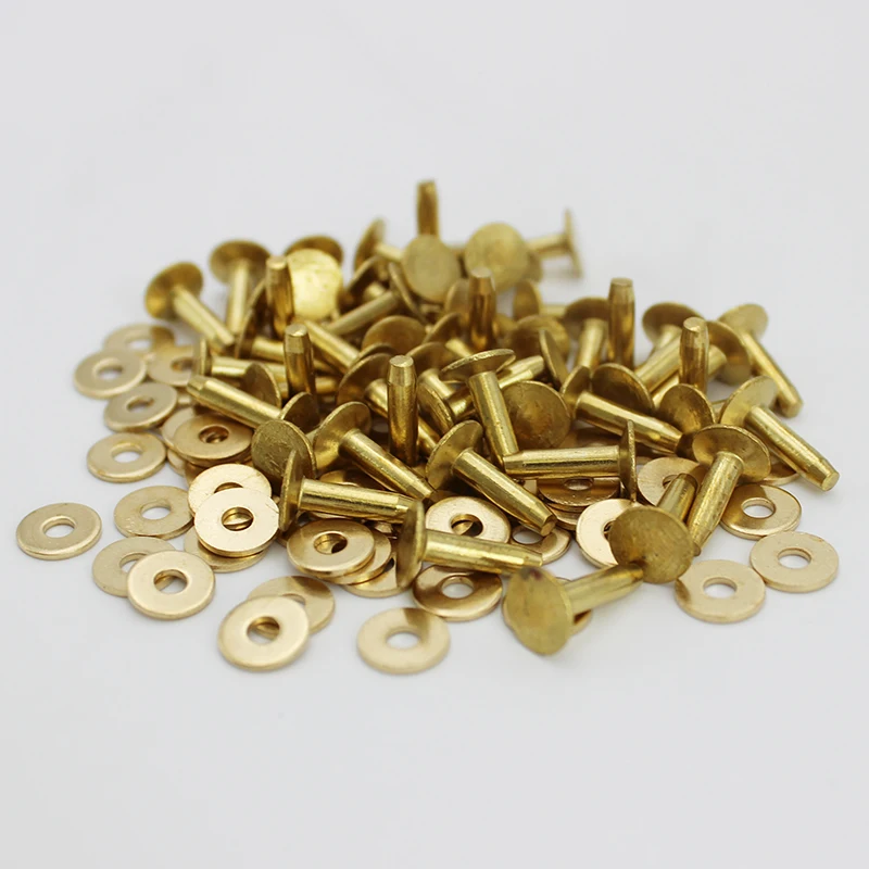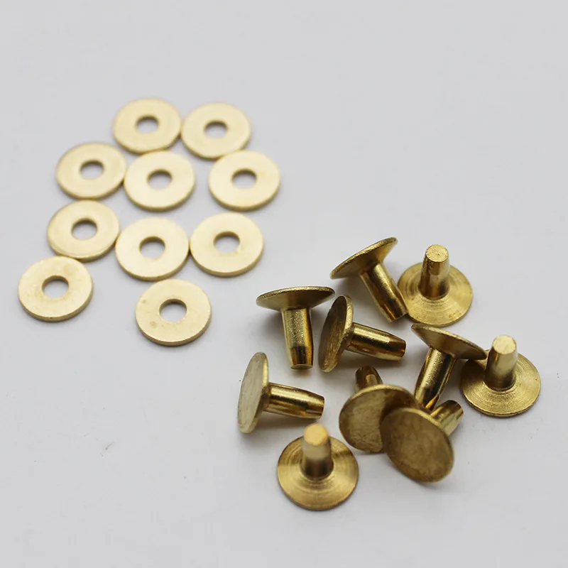 - Made from high-quality solid brass and copper for a warm, vintage finish that ages beautifully over time. These rivets are crafted to ensure longevity and a polished aesthetic.