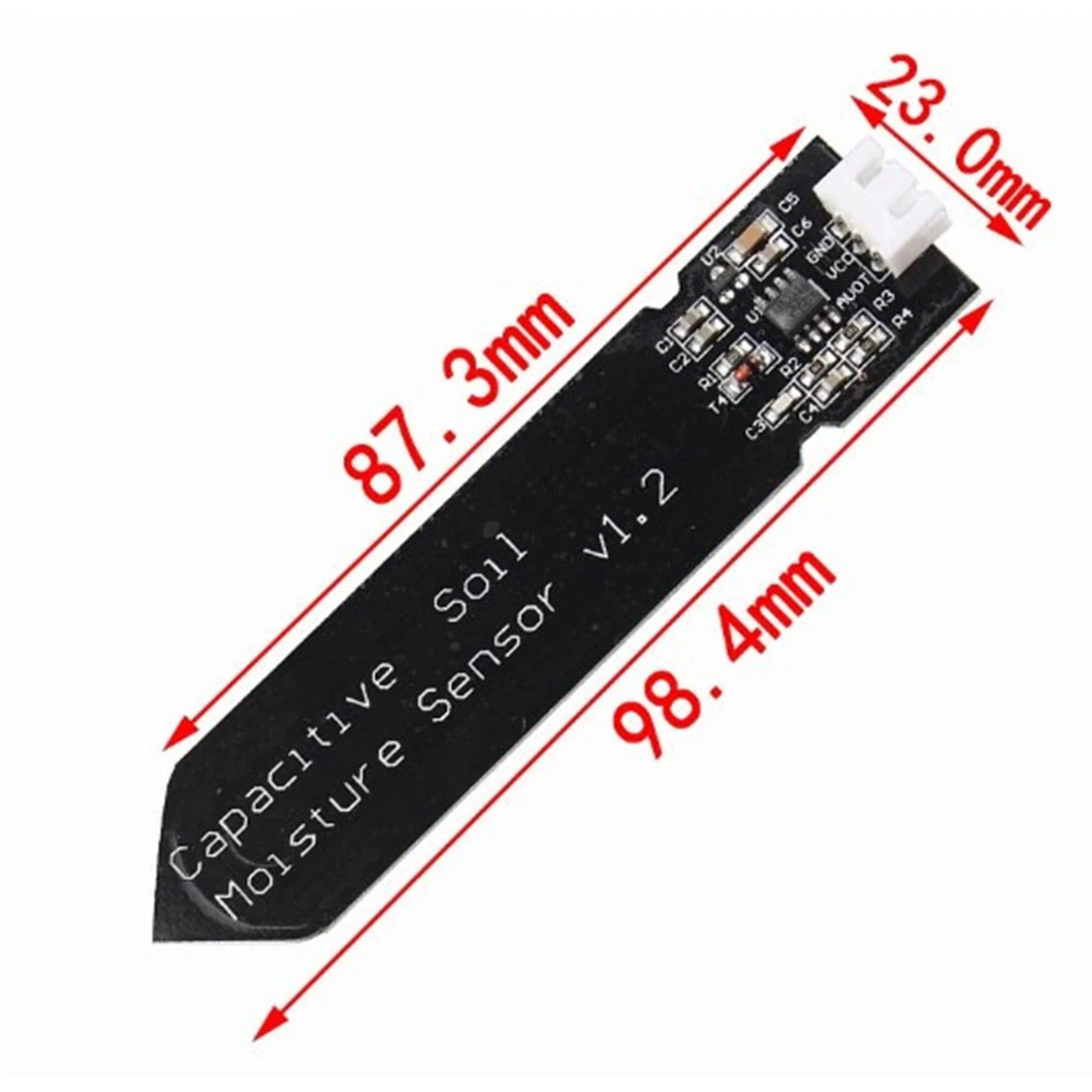 - Each sensor features a sleek black, rectangular circuit board measuring 98mm x 23mm x 3mm for discreet soil insertion and minimal soil disturbance.