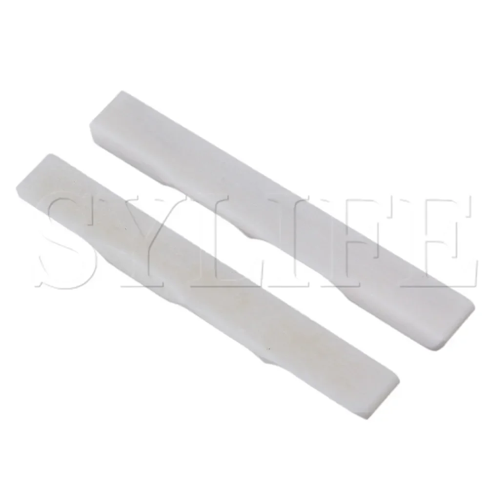Imagine elevating your ukulele’s sound with these exceptional bone bridge saddles, crafted from natural cattle bone. Their pristine white finish and smooth, polished surface reflect quality craftsmanship, enhancing both appearance and tone. The subtle grain lines and slight variations in tone highlight the innate beauty of natural material, while the beveled edge ensures a perfect fit on your instrument. Designed for 4-string ukuleles, these saddles provide standard intonation and improved resonance, delivering richer, more vibrant sound. Lightweight at just 6 grams each, they are easy to install and built to last, making them an ideal upgrade for enthusiasts seeking high performance and durability.