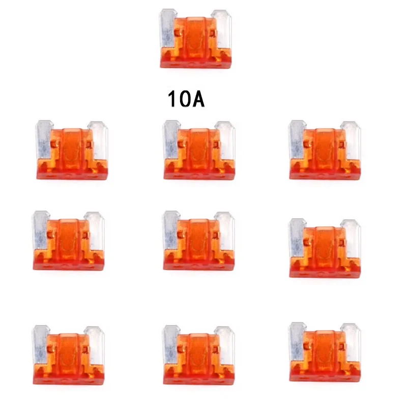 Imagine having the perfect collection of micro blade-type fuses ready for your vehicle maintenance or upgrades. This set of 10 vibrant, color-coded mini fuses is designed to seamlessly fit sedans, trucks, and motorcycles, offering both style and performance. Each fuse is made with high-quality materials for excellent conductivity, corrosion resistance, and pressure durability. The transparent bodies allow you to easily identify the amperage rating at a glance—ranging from 5A to 40A in distinct, bright hues. Whether you're replacing a blown fuse or upgrading your electrical system, these new-condition fuses ensure safe and reliable operation. Trust in their compatibility and robust design to keep your vehicle’s electrical system running smoothly and safely.