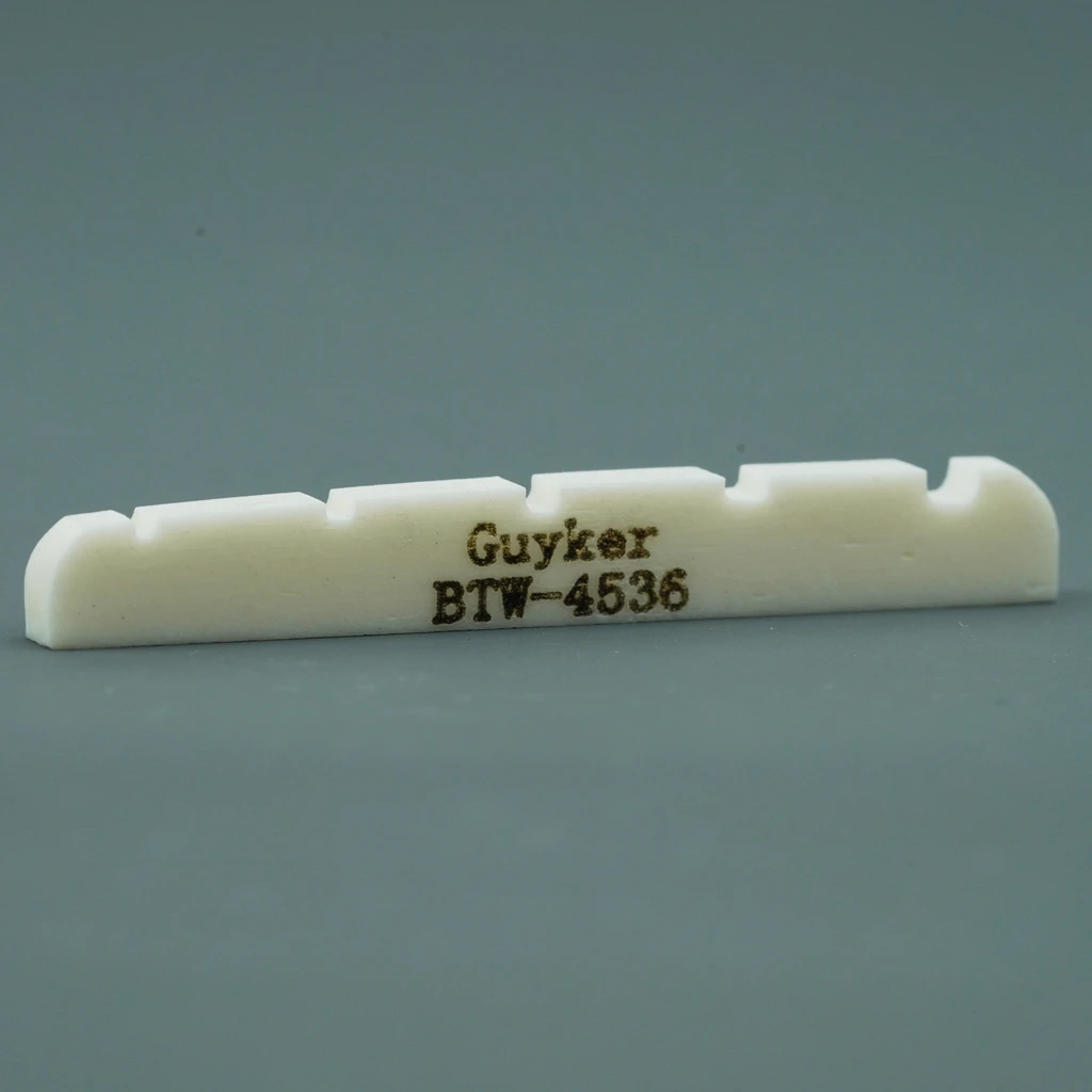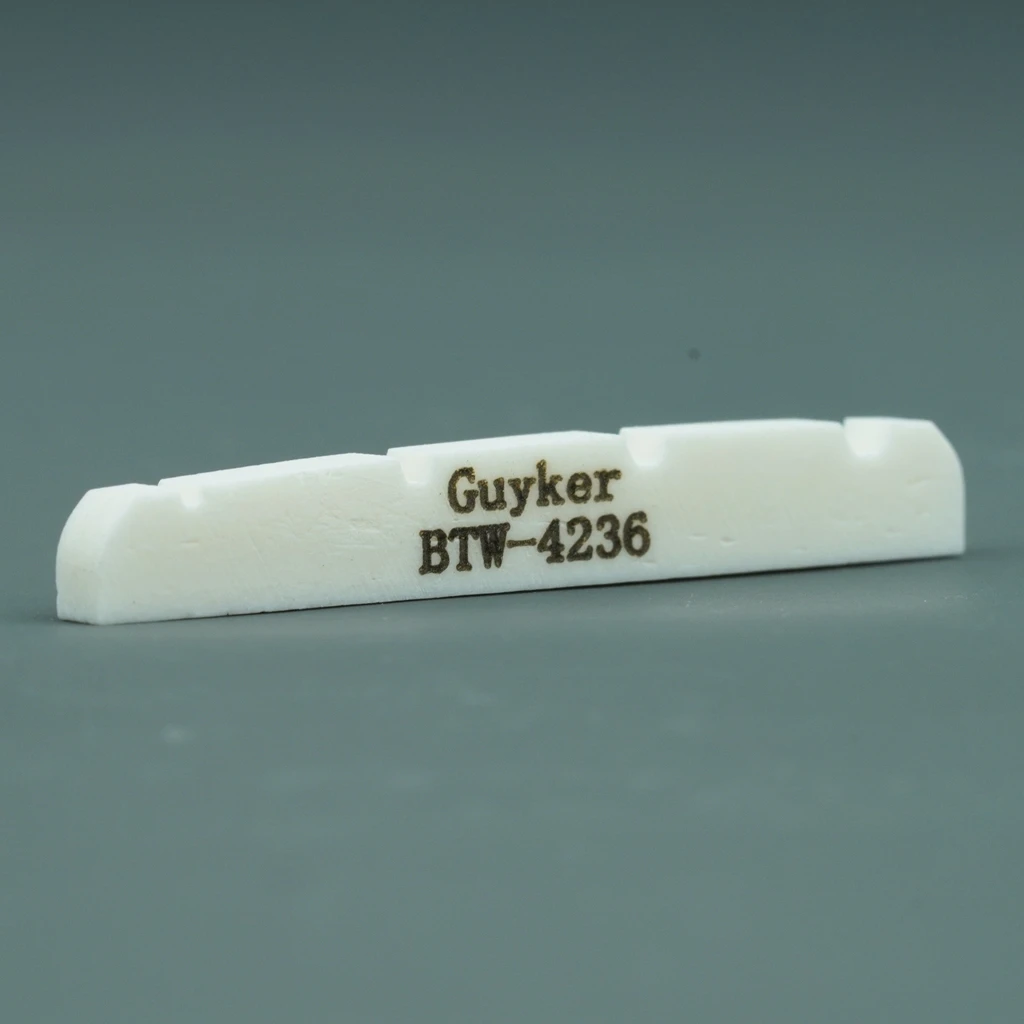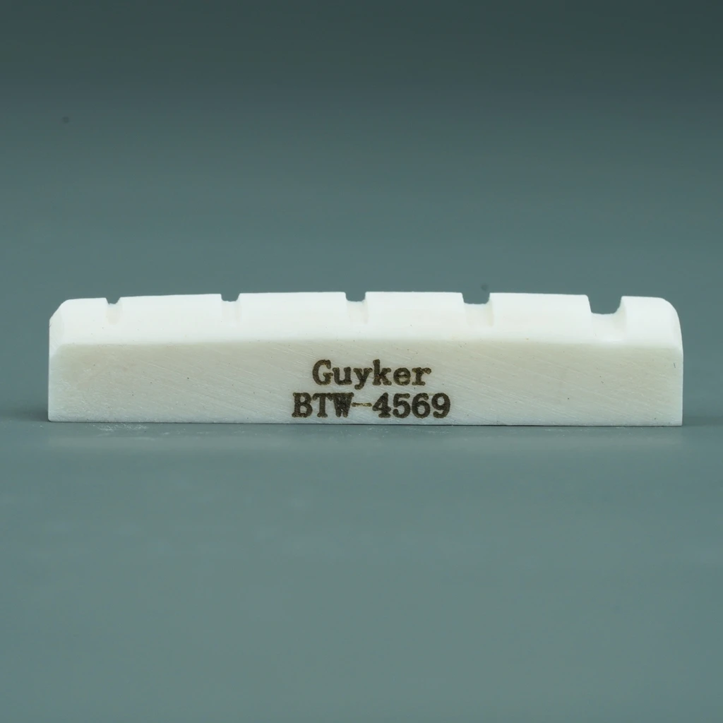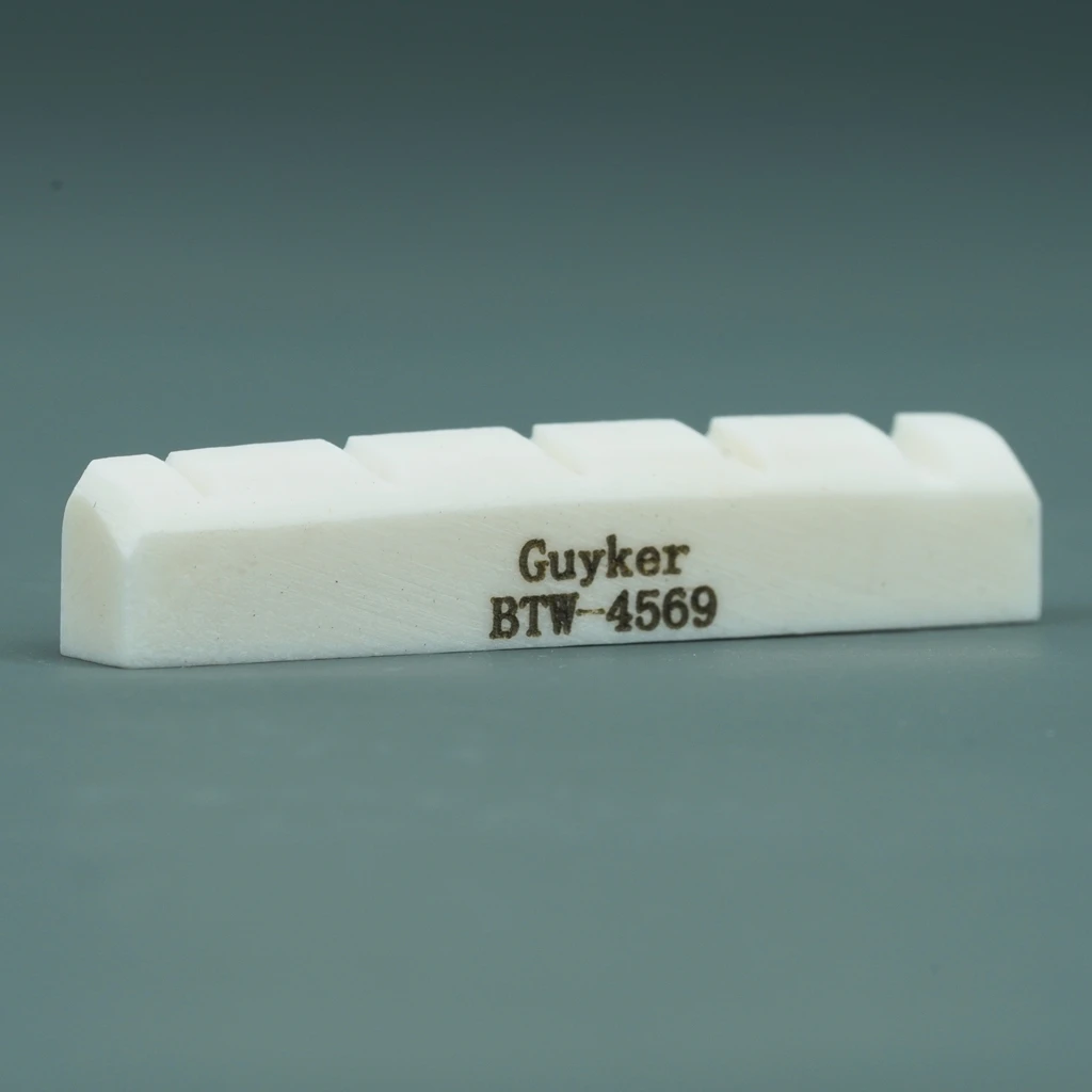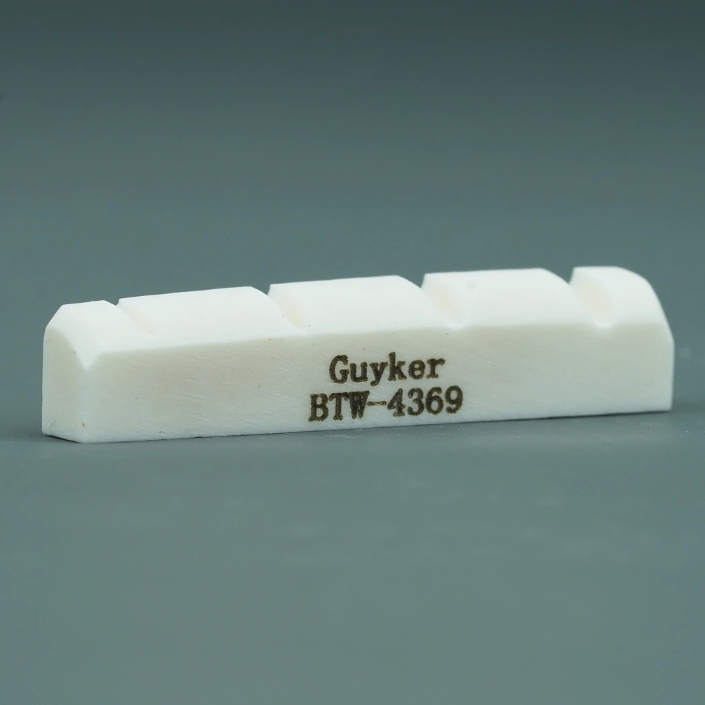 Experience the joy of music like never before with this acoustic guitar nut, made from premium cow bone. Its creamy white finish adds an elegant touch to your instrument while significantly enhancing sound quality. The polished surface ensures a smooth interaction with guitar strings, delivering beautiful resonance that fills the air. Visualize yourself strumming your favorite tunes, the notes perfectly ringing out, elevating every performance. The expertly crafted design effortlessly fits into your guitar's bridge, while various model numbers allow you to find the ideal fit tailored to your guitar, ensuring you receive nothing less than exceptional performance. This is the key to unlocking your guitar's full potential.