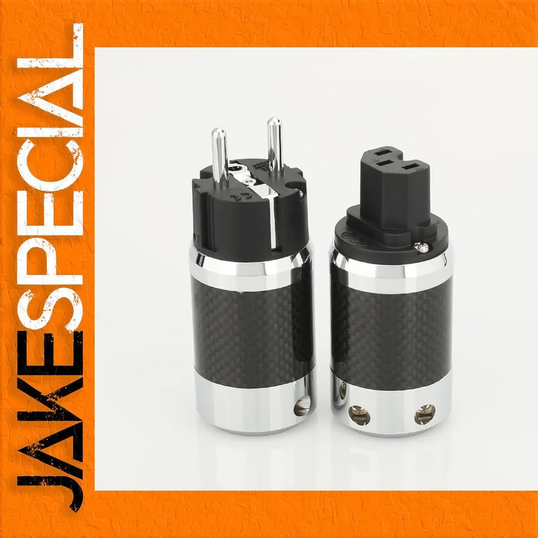 Experience the perfect blend of sophistication and functionality with this pair of high-quality EU Schuko rhodium-plated power plug and IEC connector. Crafted with a sleek, modern design, each component features a textured black carbon fiber body, exuding durability and elegance. The silver-colored metallic bases add a premium touch, and the rhodium-plated contact points ensure optimal conductivity, corrosion resistance, and long-lasting performance. Designed to accommodate cables from 6mm to 18mm in diameter, these connectors provide a secure and stable connection for your high-end audio or hi-fi systems. Whether upgrading your current setup or building a new one, these premium connectors guarantee reliable, high-performance power transmission with an aesthetic that matches your refined taste.