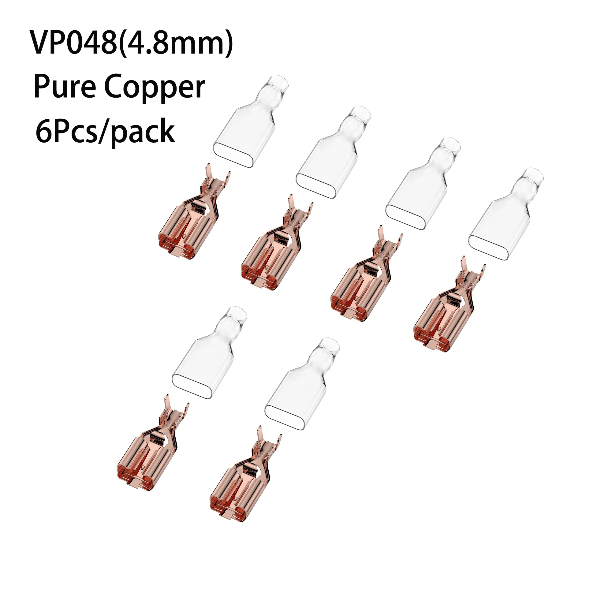 - Available in two sizes: VP048 with 4.8mm width for wire gauges 0.5-1.0 mm² (up to 1.5mm diameter, 15 AWG) and VP063 with 6.3mm width for similar wire gauges but accommodating cables up to 2.3mm diameter (11 AWG).