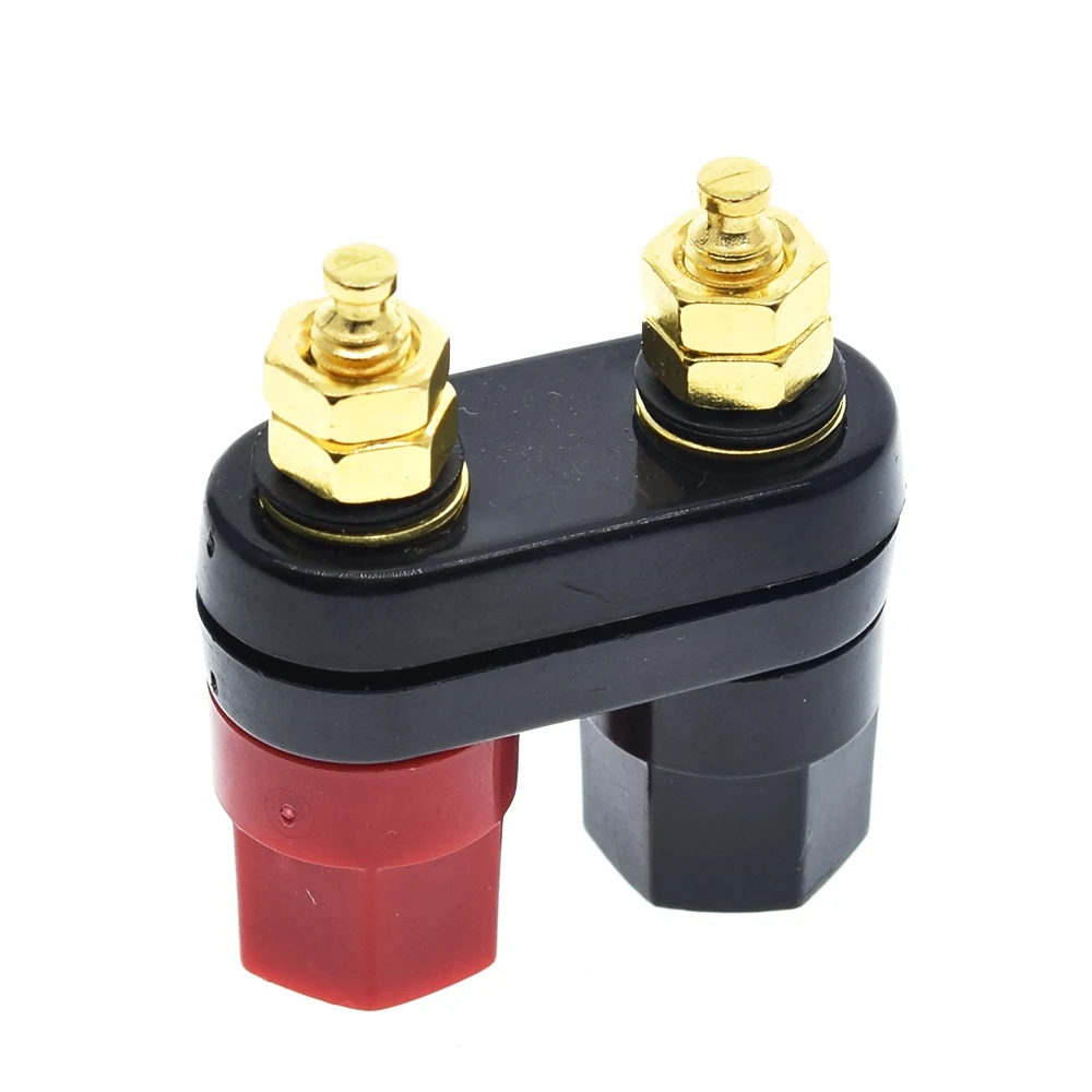 Experience the perfect blend of functionality and aesthetic appeal with this set of banana plug connectors. Crafted with shiny, gold-colored metallic finishes, these plugs are designed to add a touch of sophistication to your electronic setup. Available in configurations of 1 or 3 pieces, they feature striking red and black color coding for clear positive and negative connections. The sturdy black rectangular terminal block base provides a minimalist yet durable foundation. Each plug includes a secure gold-plated screw to firmly hold your wires, ensuring reliable electrical contact. Whether you're upgrading your audio system or working on electronic projects, these connectors offer easy installation, durability, and a sleek modern look that enhances any setup.