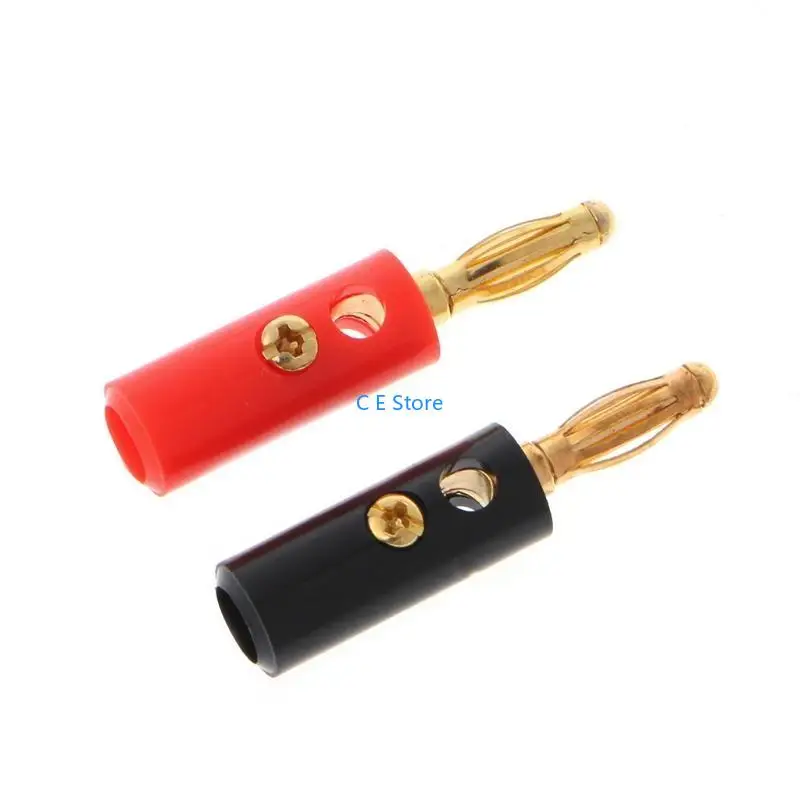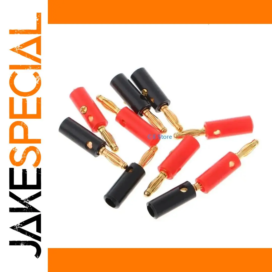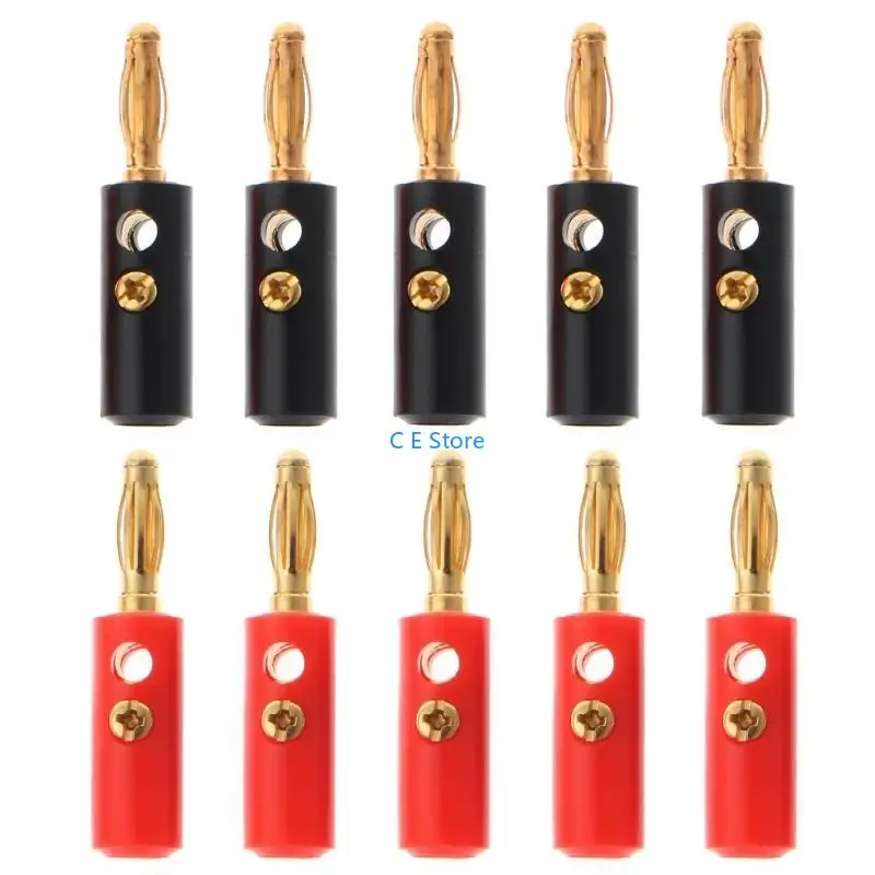 Enhance your audio setup with this set of 10 high-quality gold-plated banana plug connectors, featuring 4mm pins compatible with most speakers worldwide. Each plug measures 3.8cm in length, 0.85cm wide, and 0.55cm high, crafted from durable plastic and gold-plated alloy for excellent conductivity and a sleek appearance. The set includes five vibrant red and five deep black handles, designed for easy stackability and secure connection without soldering. Perfect for high-fidelity sound systems, these connectors ensure a professional, reliable connection for speaker cables up to 3mm in diameter. Elevate your speaker wiring with simplicity and style.