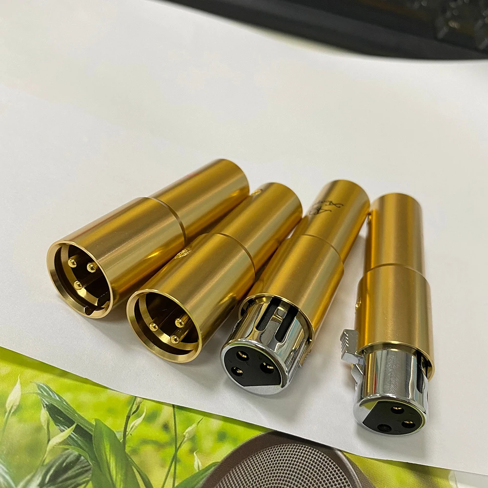 Experience premium audio quality with this set of high-quality XLR connectors featuring gold-plated contacts and pure copper conductors for superior conductivity and durability. Available in male and female configurations, including options for one female and one male, or two males and two females, these connectors are designed to support cables with wire sizes up to 9.0mm. The sleek, polished gold exterior offers a professional, high-end look, while the seamless construction ensures reliable connections for professional audio applications. Perfect for those seeking durable, high-performance connectors, this product is CE certified, brand new, and crafted without concerning chemicals, ensuring top-tier quality with every connection.