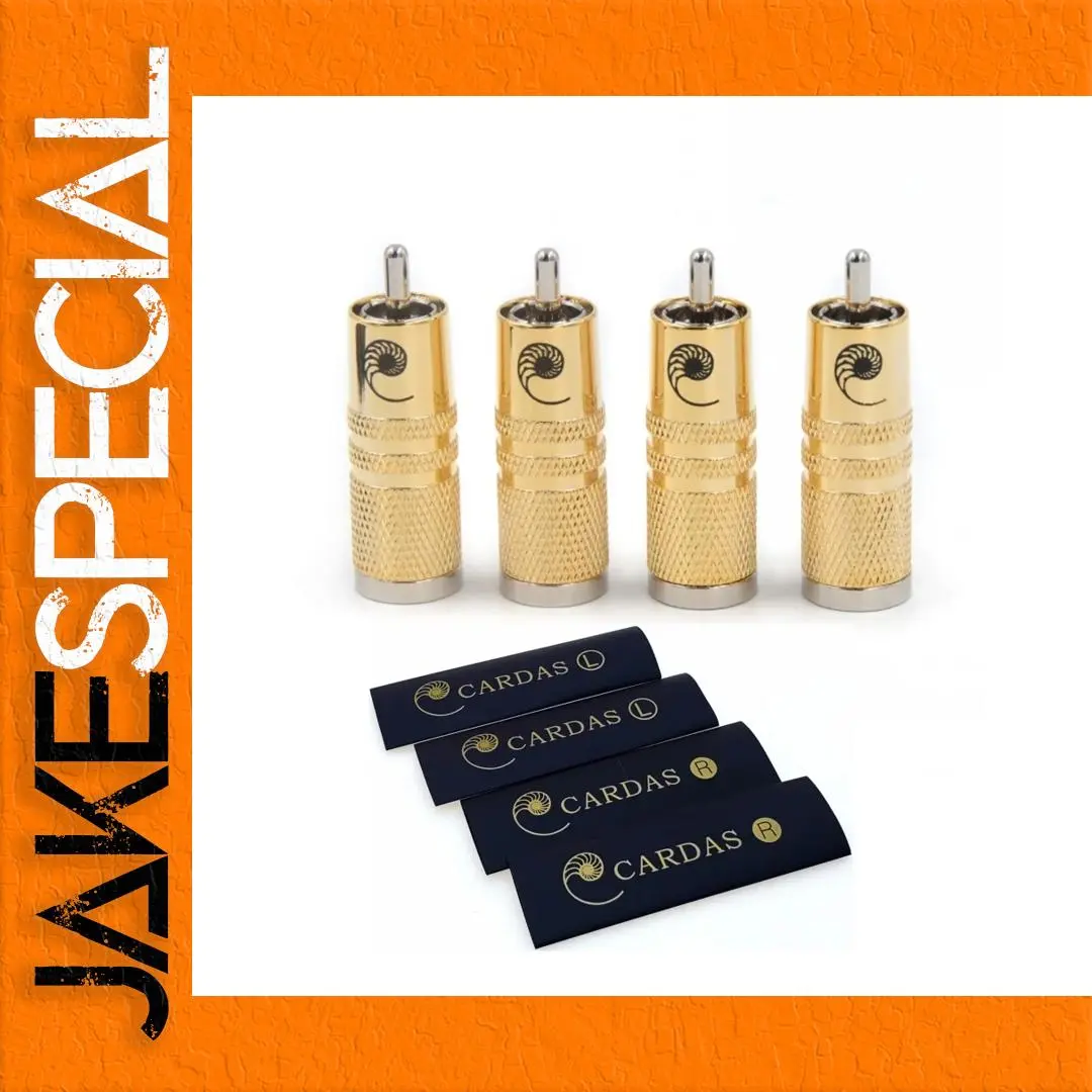 Experience the highest quality audio connection with this premium set of RCA male connectors. Crafted from eutectic brass and plated with a luxurious gold finish, these connectors combine durability with a sophisticated look. Their cylindrical design features a shiny, polished surface with a textured knurled grip for secure handling during installation. The silver-colored metal pins protrude slightly from the shell, ensuring a solid and reliable connection. The black spiral logo adds a subtle touch of elegance. Perfect for audiophiles seeking optimal electrical performance, these connectors enhance sound clarity and stability. The included heat shrinkable sleeves provide insulation and protection, making your audio setup both stylish and dependable. Install with confidence and enjoy superior sound quality.