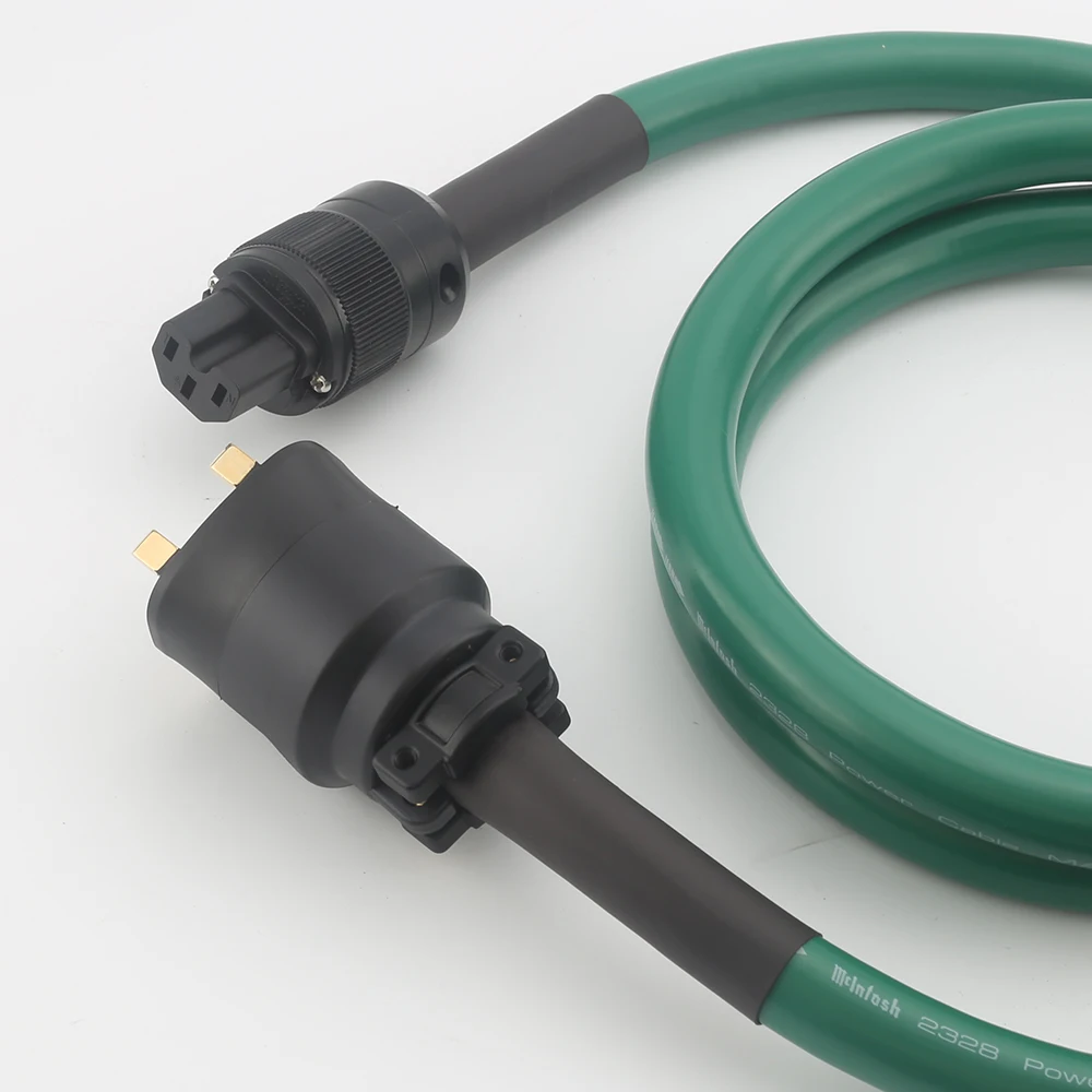 Imagine elevating your audio system with this high-quality, striking green power cable designed for serious audiophiles. Its vibrant, polished surface reflects durability and craftsmanship, making it a striking yet professional addition. The cable features a sturdy, thick structure with an outer diameter of 18.12mm, ensuring excellent current capacity and minimal signal loss. Both ends are reinforced with black, ribbed, cylindrical housings that protect against strain and enhance longevity. Its sleek, molded connectors with rounded shapes and matte finish offer a seamless connection to amplifiers, DVD players, and other high-end audio equipment. Whether you're upgrading your system or replacing an existing cable, this model combines aesthetic appeal with technical precision for ultimate sound fidelity.