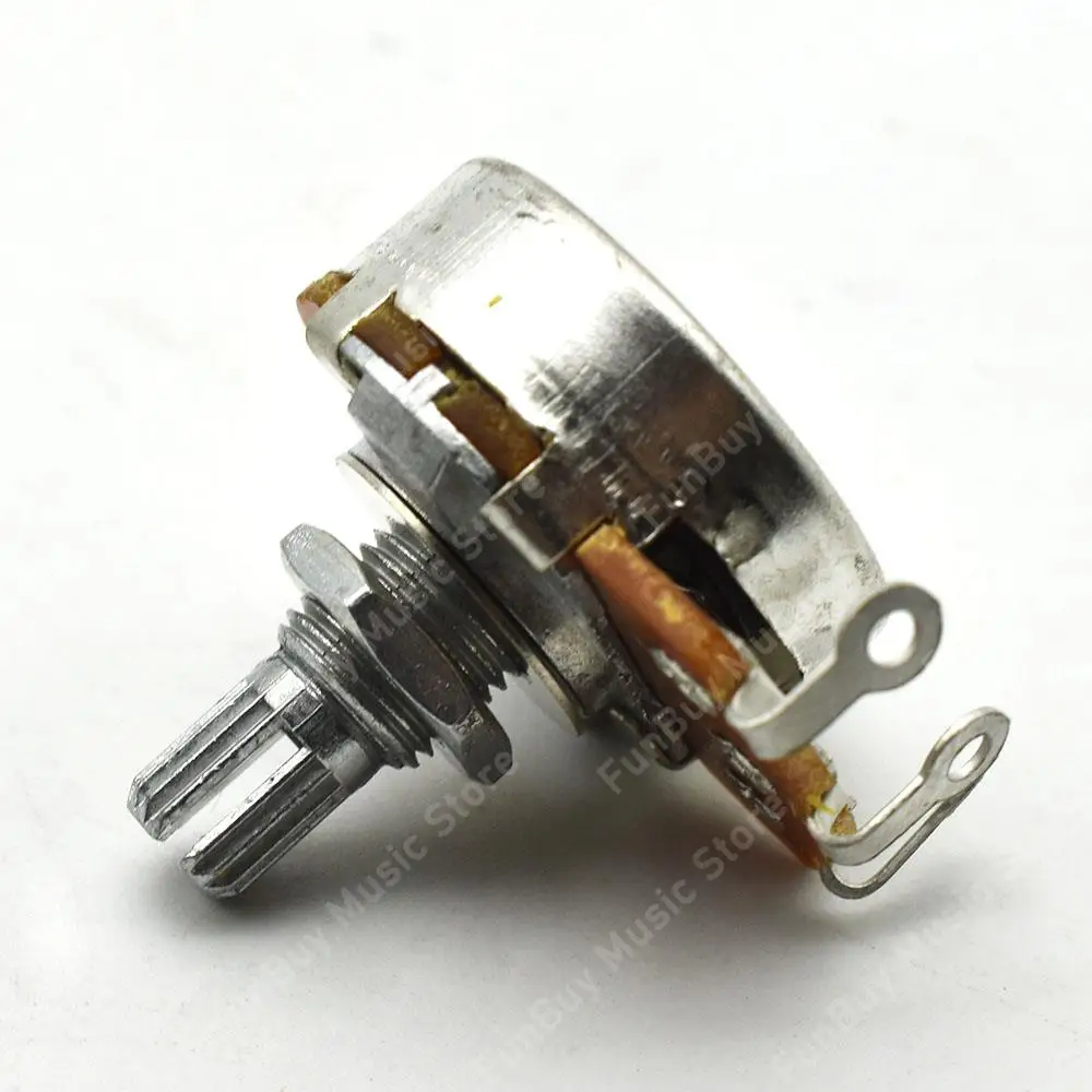 Upgrade your electric guitar or bass with this set of 20 high-quality, silver-colored potentiometers featuring a durable metal construction. Each unit has a 15mm short split shaft with a 6mm diameter and an 8mm thread diameter, designed for easy installation and compatibility with most control knobs. Choose from resistance options of 250K ohms or 500K ohms, available in audio taper (A) or linear taper (B) types, with an overall length of approximately 29mm and a base diameter of 24mm. Perfect for replacing or upgrading tone and volume controls, these potentiometers combine rugged durability with precise performance.