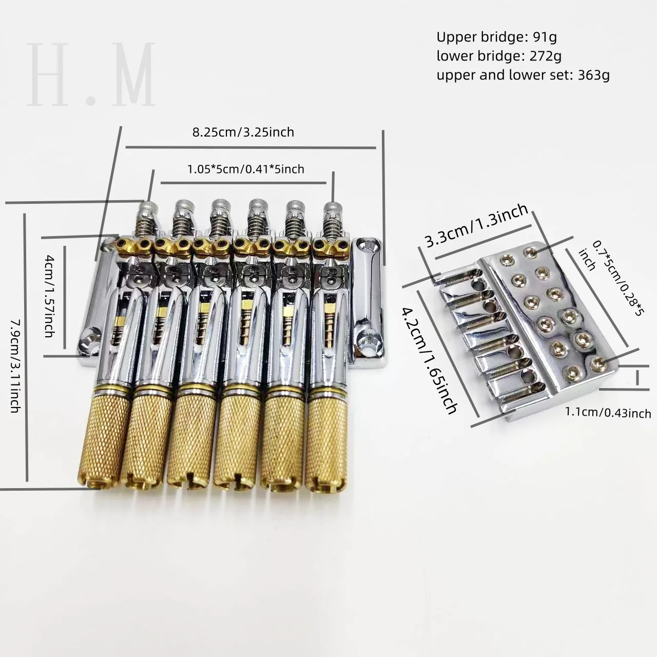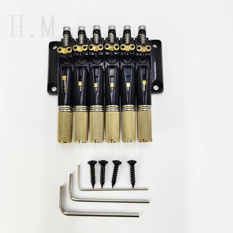 - This superior guitar bridge set is made from zinc alloy and brass, ensuring robustness and high resistance to corrosion, with a refined high-gloss finish for a professional and sophisticated look.