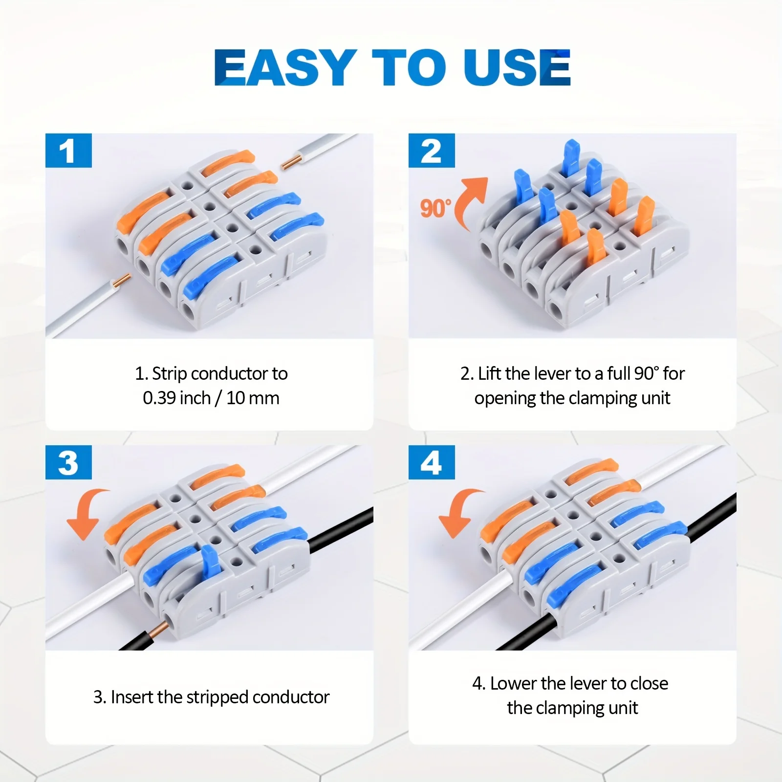- Features transparent, durable plastic construction with a smooth, ergonomic design that allows quick wire insertion and secure locking without tools, saving you time and effort during installation.