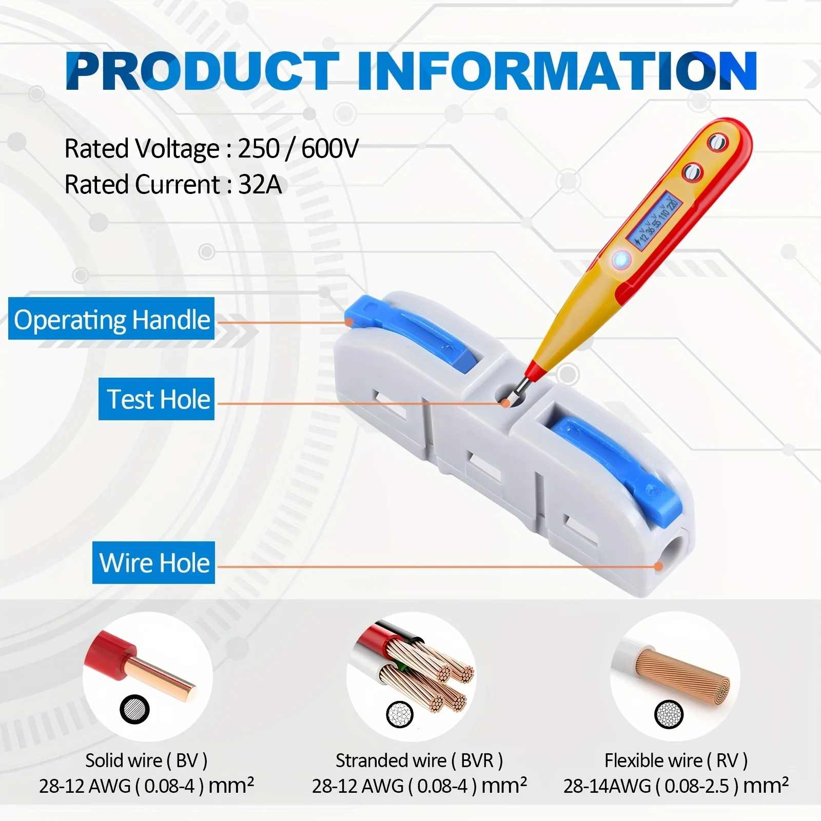 - Compatible with a wide range of electrical wires, accommodating different wire gauges, and specifically designed as line connectors for secure, compact splicing suitable for various voltage ranges and environments.