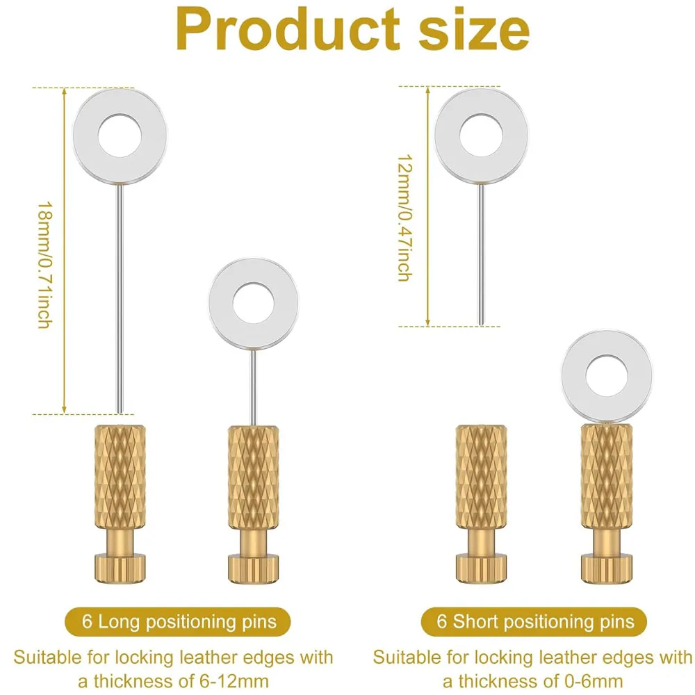 Transform your leather crafting with this meticulously crafted set of leather suture positioning needles. Designed for professionals and hobbyists alike, these needles feature a luxurious gold-colored stainless steel finish combined with durable brass components. The set includes versatile short needles for precise edges of 0-6mm and long needles suitable for thicker edges up to 12mm. With knurled, non-slip bases and ergonomic grips, the needles ensure maximum control and stability during intricate sewing tasks. The natural leather strip display organizes these high-quality tools, enhancing your workspace. Whether you’re repairing, saddle stitching, or creating intricate leather projects, this set provides the perfect balance of style, function, and durability.