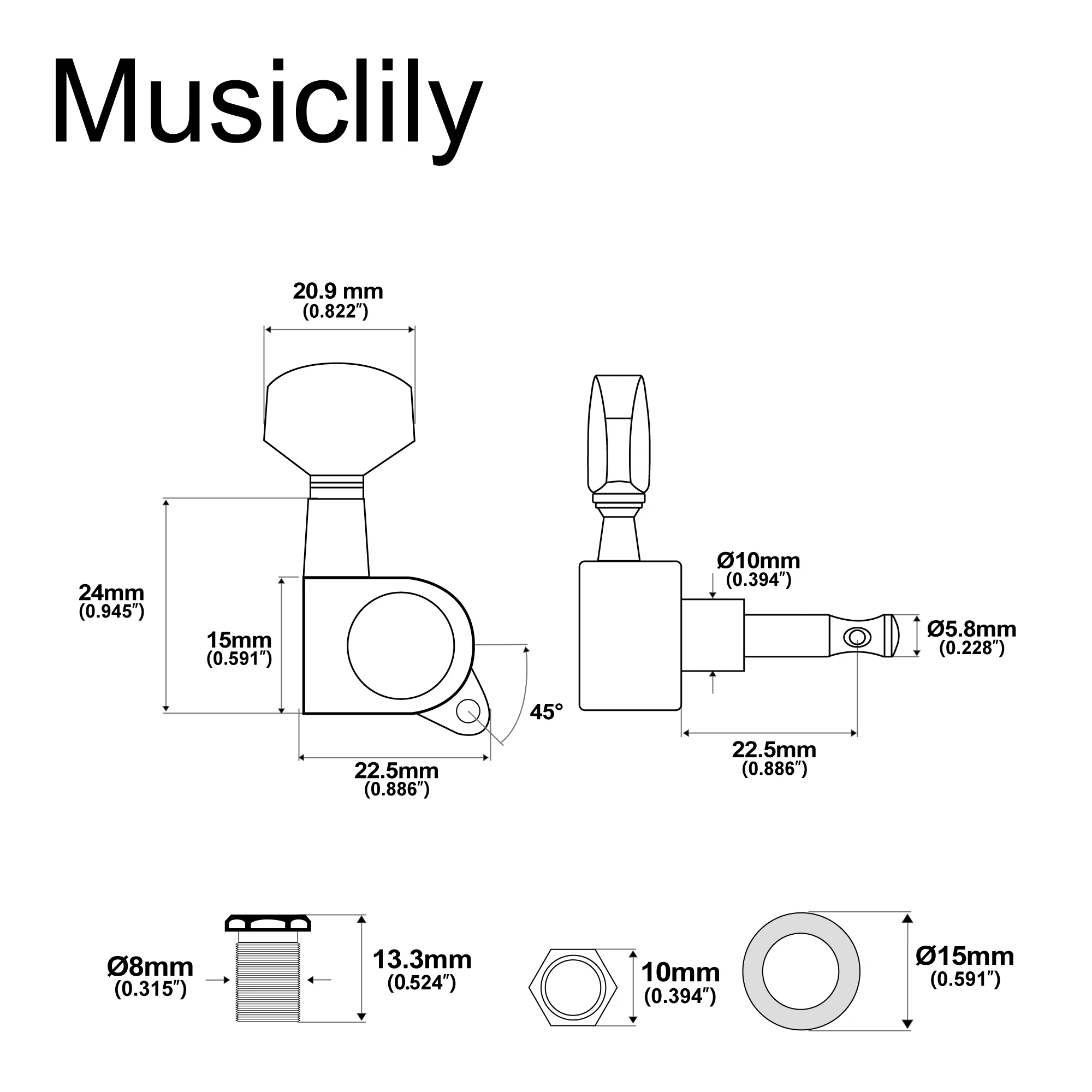 - Includes three right-hand and three left-hand tuners, perfectly symmetrical for balanced guitar headstocks.
