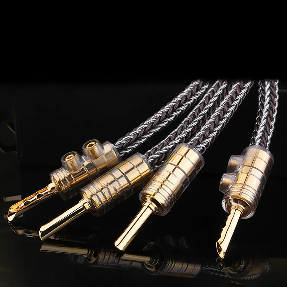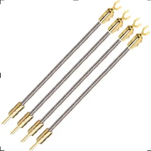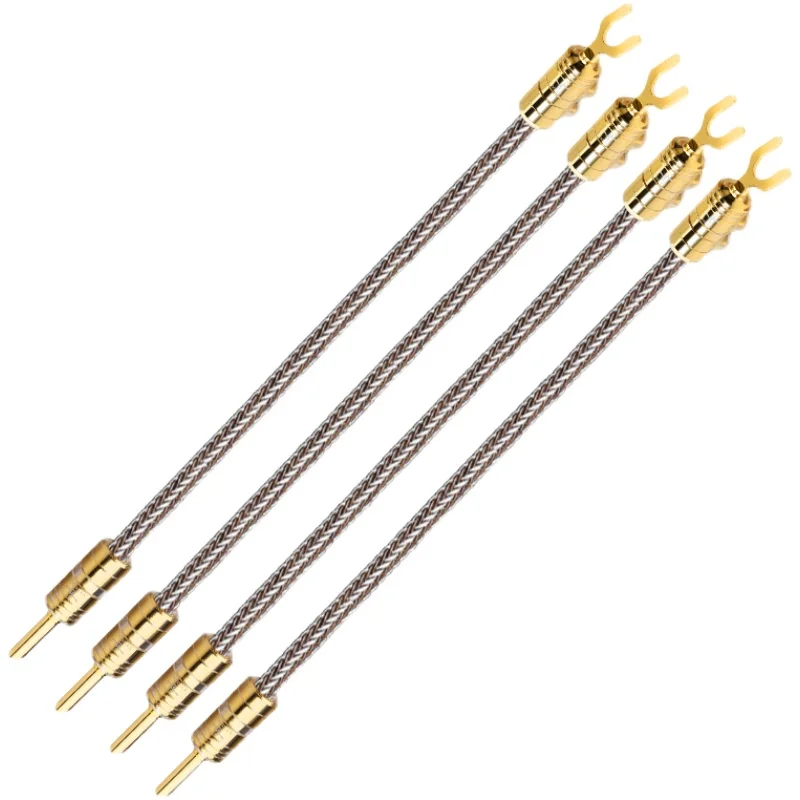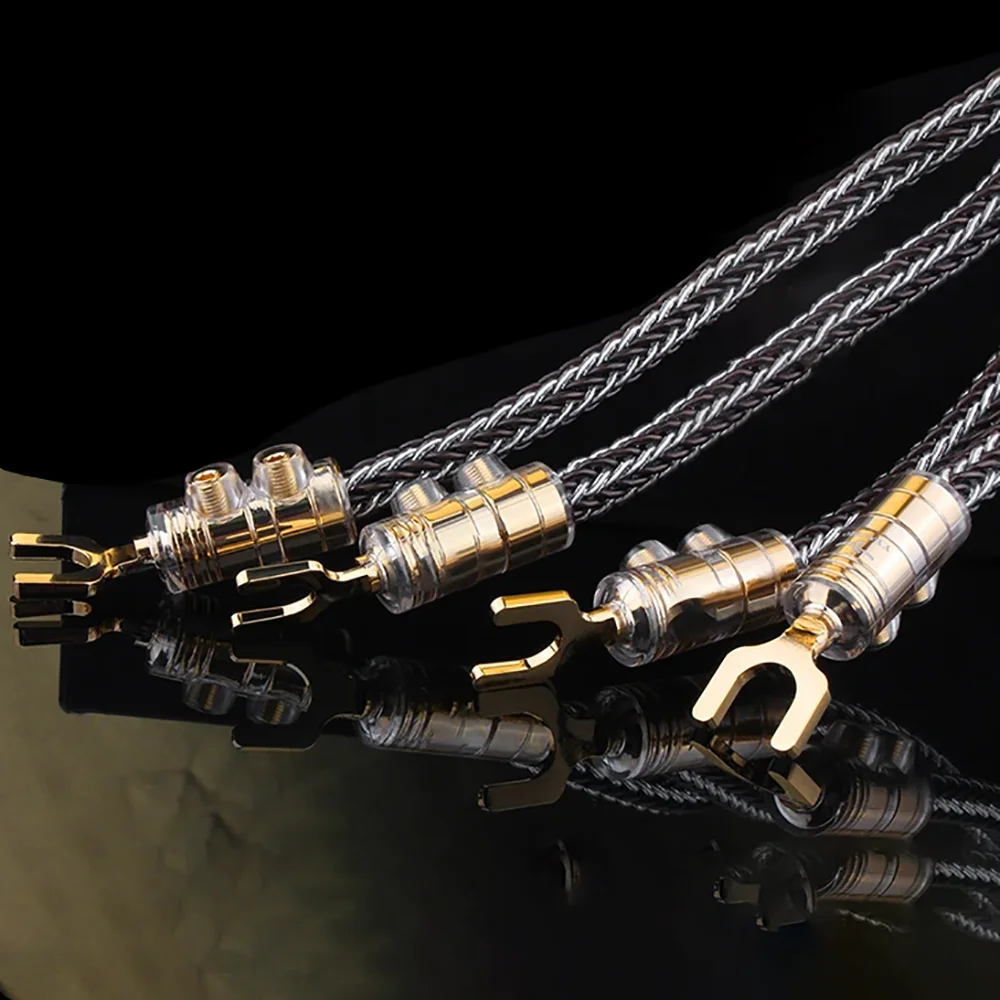 Experience premium audio clarity with this speaker connecting cable featuring 16 strands of OCC copper with a 6.5 mm diameter, designed for audiophile-grade signal transmission. It includes a male jack with a Y-plug configuration, silver-plated OCC braided shielding for noise reduction and durability, and is suitable for connecting speakers, microphones, multimedia devices, monitors, projectors, and amplifiers. Available in lengths of 20 cm, 25 cm, and 30 cm, it offers reliable performance and a sleek, metallic look with polished gold connectors. Certified by CE and RoHS, this high-quality cable guarantees exceptional sound quality for your audio setup.
