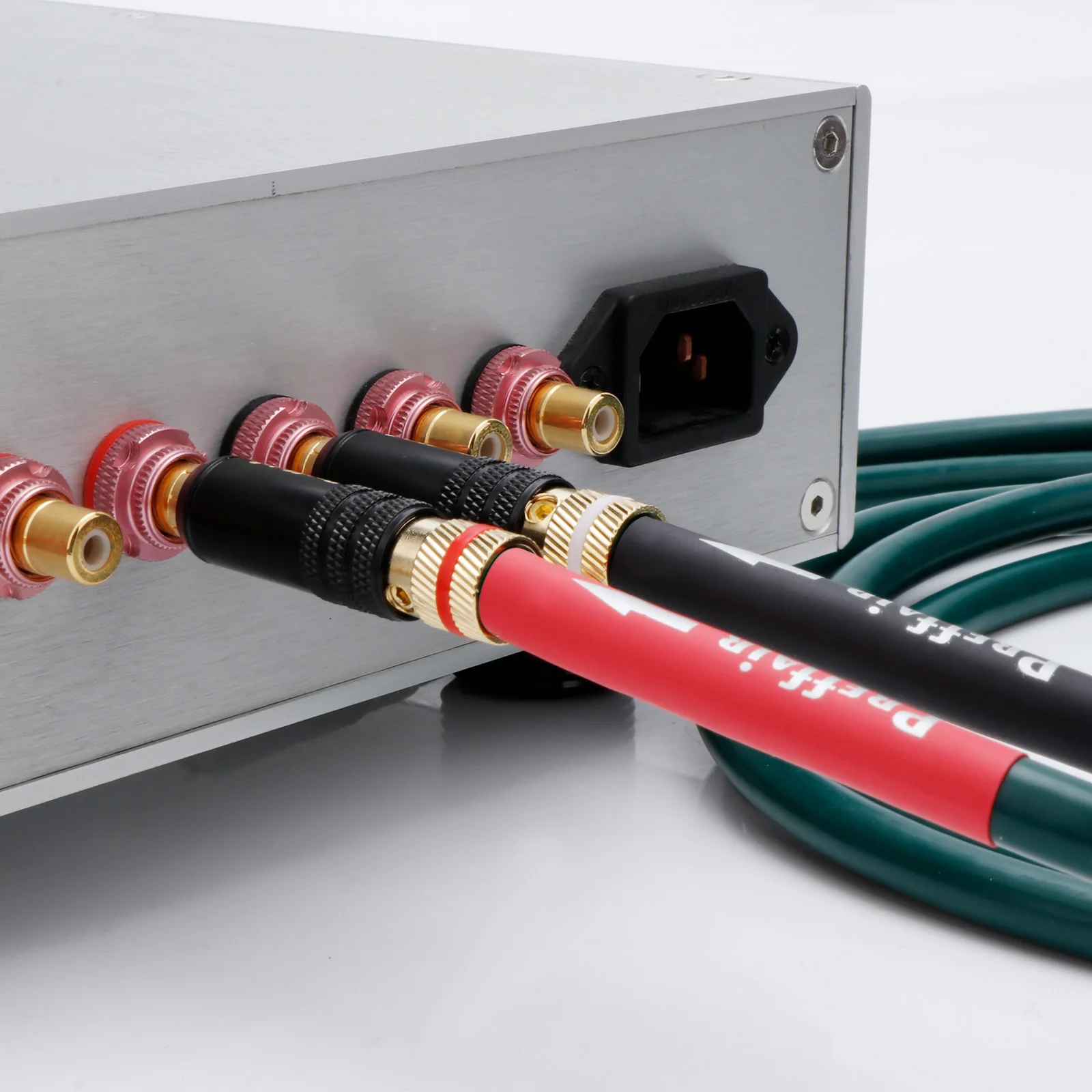 Experience superior sound clarity with this high-end RCA cable designed for discerning audiophiles. Its dark green, smooth outer jacket provides flexibility and durability, ensuring reliable connections over time. The gold-plated connectors, housed in sturdy black casings, offer excellent conductivity and corrosion resistance. Red and black outer sleeves make channel identification simple, while textured grips ensure easy, slip-free handling. The substantial 8mm diameter indicates a robust build, minimizing signal loss. With comprehensive shielding—high-density woven layer, aluminum foil, and polyester film—the cable fully isolates external and stray interference, delivering pristine audio. Perfect for home audio systems, ensuring every note and detail reaches your ears with clarity and fidelity.