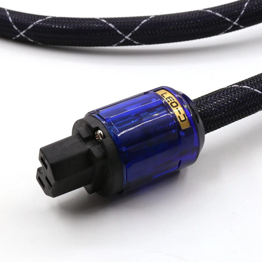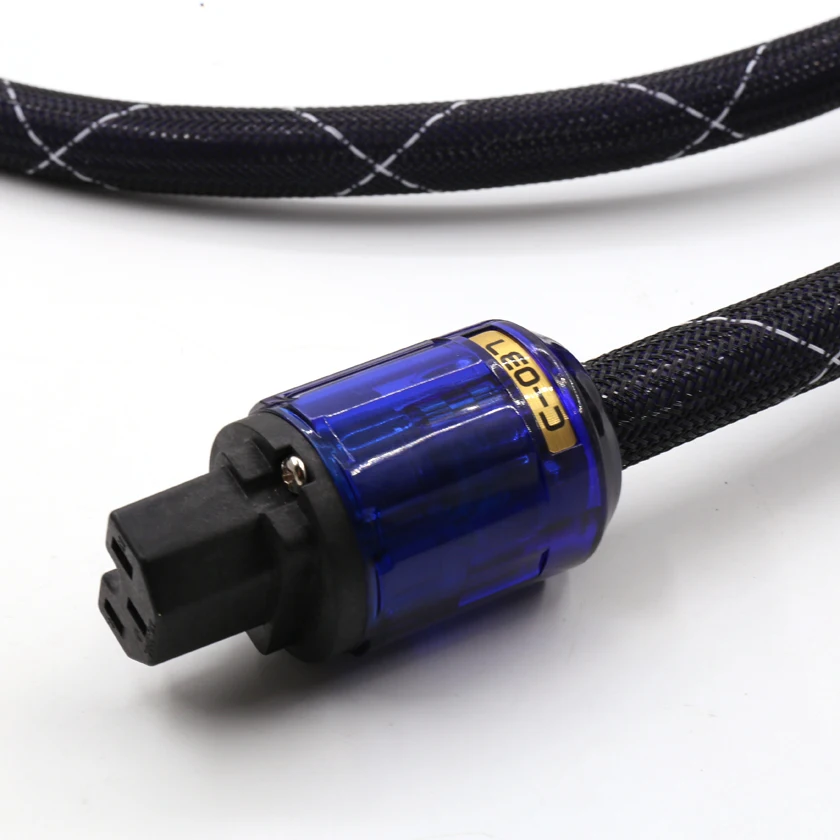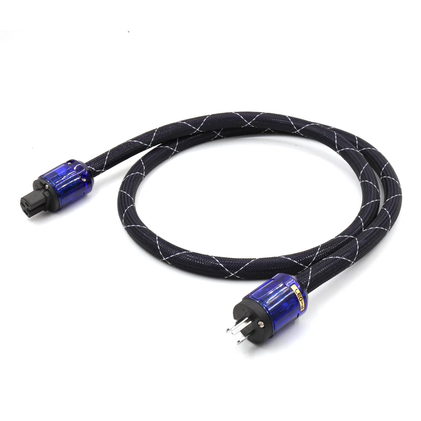 Experience exceptional sound clarity and robust build quality with this high-end OFC silver-plated audio power cable. Designed for discerning audiophiles and high-fidelity setups, it features a sleek black outer sheath accented by distinctive white diamond-patterned stitching, reflecting superior craftsmanship and durability. The transparent blue connectors reveal the high-quality rhodium-plated contact points and internal components, emphasizing a modern, high-tech aesthetic. With a generous outer diameter of 16mm and shielded construction, it offers superior noise reduction and reliable conductivity. Whether you are upgrading your speaker system, DVD player, or amplifier, this cable offers premium performance and a visually striking design that complements any high-end audio setup. Enjoy immersive sound with confidence and style.