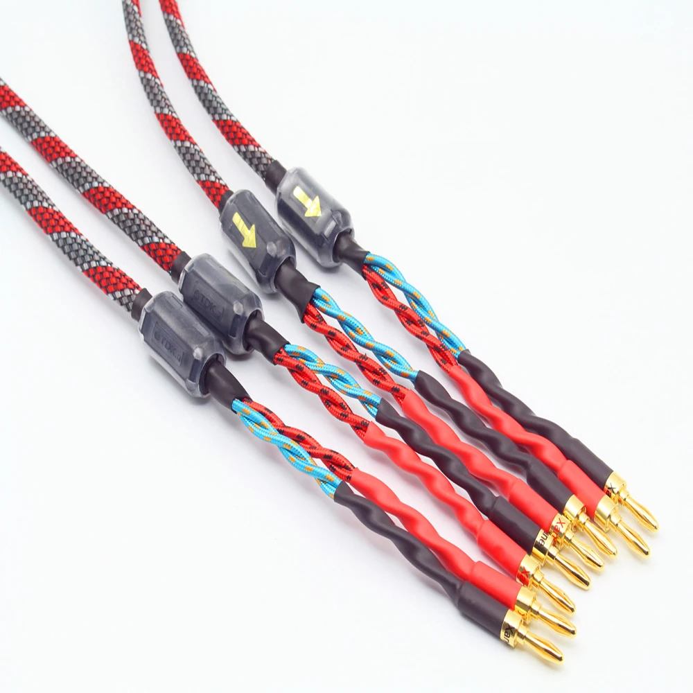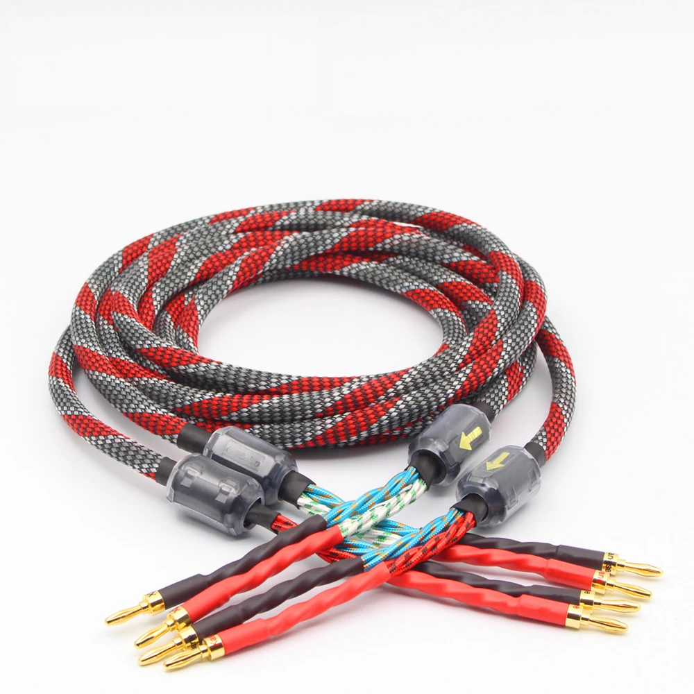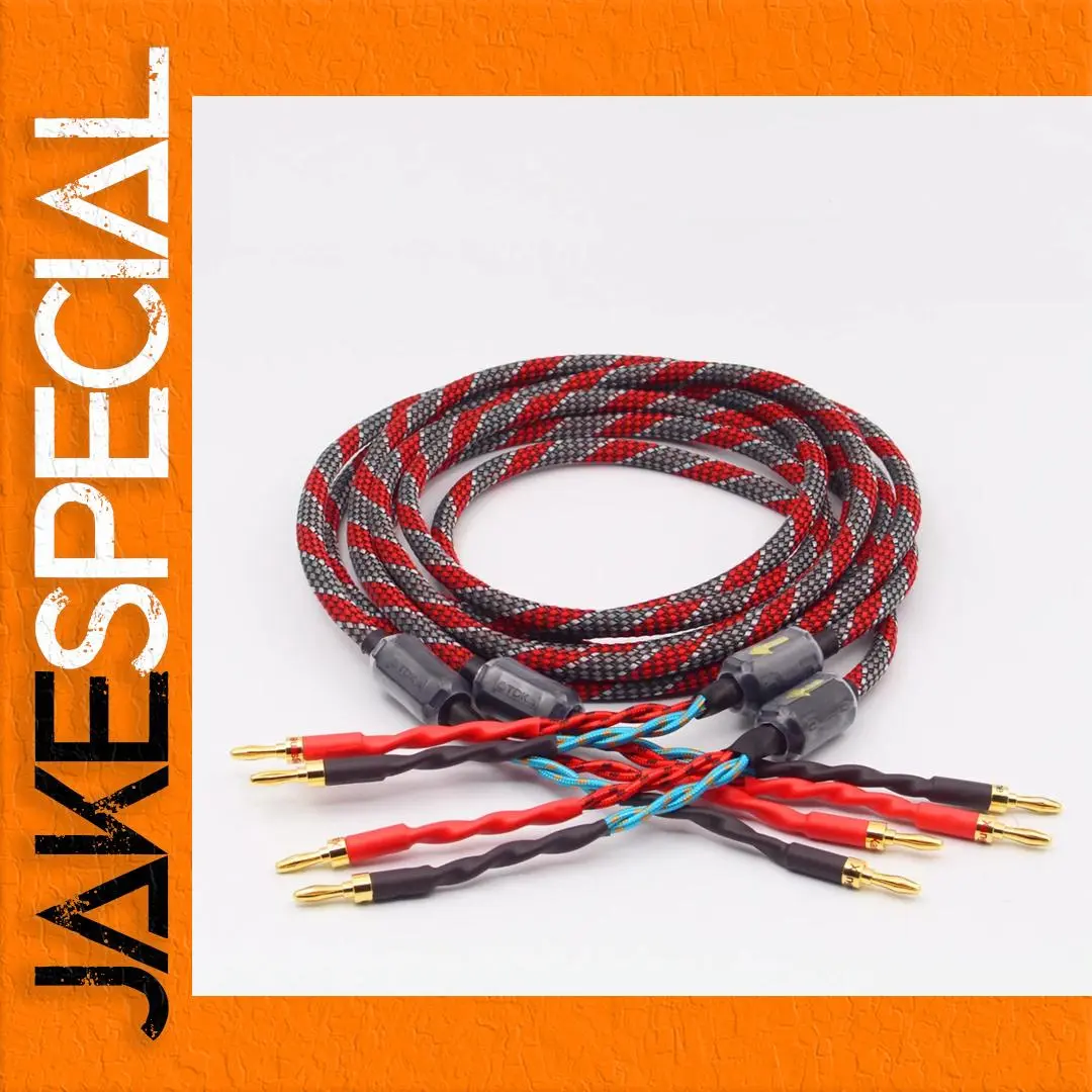 Experience exceptional audio clarity with this high-quality oxygen-free copper speaker cable. Designed for audiophiles and high-end sound systems, it offers balanced high, mid, and low-frequency response, ensuring your music and audio come alive with vivid detail. The cable features a sturdy, multi-strand glue structure composed of 8 strands of 0.8mm² (20 AWG) pure copper conductors, providing durability and excellent conductivity. Its braided outer sheath in red, black, and grey creates a sophisticated, textured appearance that complements premium audio setups. The pure copper-plated male banana connectors and jack connectors deliver reliable, corrosion-resistant connections. With multiple lengths available—from 1 meter to 5 meters—this cable is versatile and easy to adapt to various multimedia configurations, ensuring optimal sound performance with all compatible equipment.