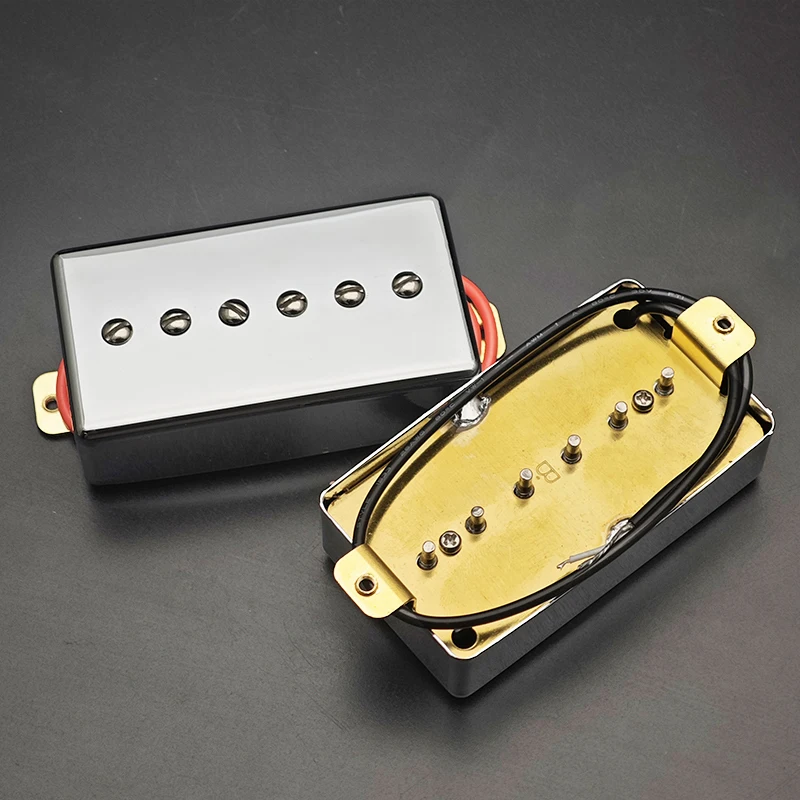 Experience the perfect blend of vintage charm and modern craftsmanship with these high-quality P90-style electric guitar pickups. Designed for both neck and bridge positions, these pickups feature a sleek, rectangular shape with a polished metallic finish—available in striking chrome, bold black, or luxurious gold. The six adjustable pole pieces ensure precise tone shaping, while the ceramic magnets deliver dynamic sound with clarity and punch. Fully wax potted and sealed, these pickups minimize noise and feedback, making them ideal for professional performances or studio recordings. Built with durable brass baseplates, plastic bobbins, and shielded cables, they guarantee long-lasting performance. Elevate your guitar's sound with these versatile, artist-grade pickups for an unmistakably vintage-inspired, high-end look and feel.