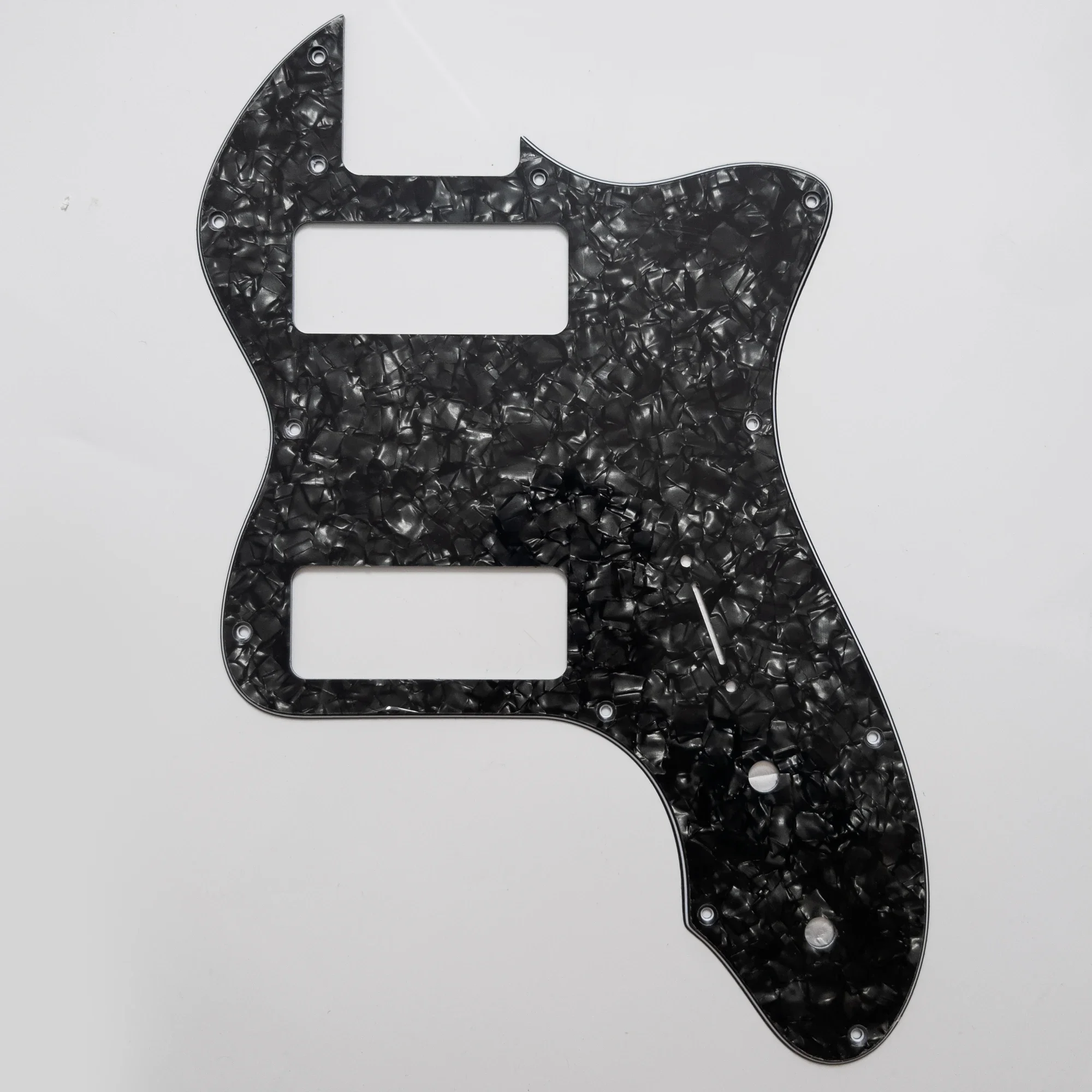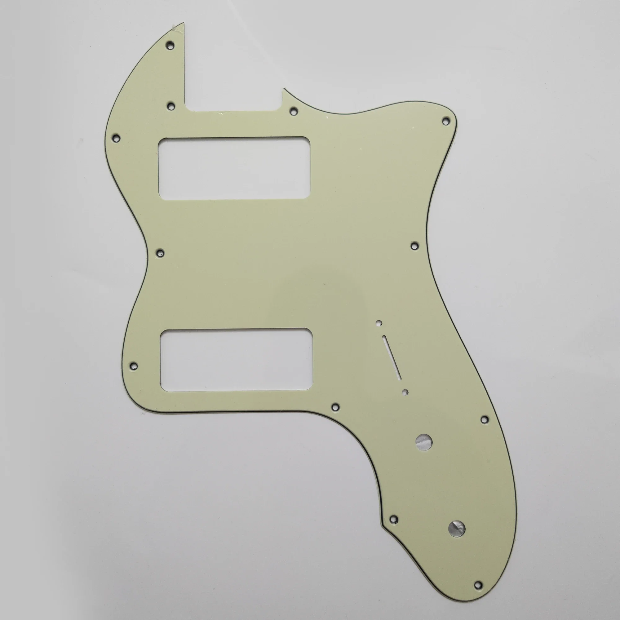 Imagine upgrading your vintage-style guitar with this stunning pickguard, perfectly tailored for your '72 Thinline Tele model with P90 pickups. Crafted from durable, lightweight plastic, it features a glossy finish that offers a sleek, polished look while protecting your guitar’s body from scratches and wear. CNC-precision-cut, it ensures a seamless fit with pre-drilled mounting holes for hassle-free installation, eliminating the need for modifications. Available in six vibrant and sophisticated colors—Black, White, Beige, Black Pearl, White Pearl, and Vintage Green—each option allows you to customize and enhance your guitar’s aesthetic. Whether for personal use or a professional restoration, this component adds both style and function, making your guitar look and perform like new.