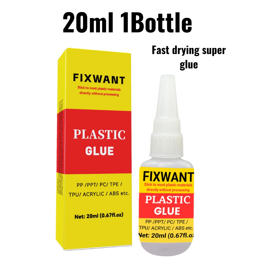 Experience the versatility and strength of this premium plastic glue, specially formulated for bonding a wide range of materials including polypropylene, polyethylene, ABS, PS, PVC, and more. Its sleek, minimalist design features a predominantly white semi-transparent container that exudes professionalism. Available in two variants — fast-drying 20ml and slow-drying 50ml — this adhesive ensures you have the perfect solution for both quick fixes and more durable bonds. The precision applicator tip allows for clean, targeted application, reducing mess and wastage. Whether you are working on DIY, repair, or craft projects, this product provides reliable, long-lasting adhesion that dries clear and becomes fully cured within 24 hours. Its high solid content (42-48%) and surface drying time of 5-8 minutes make it an efficient choice for various bonding tasks.